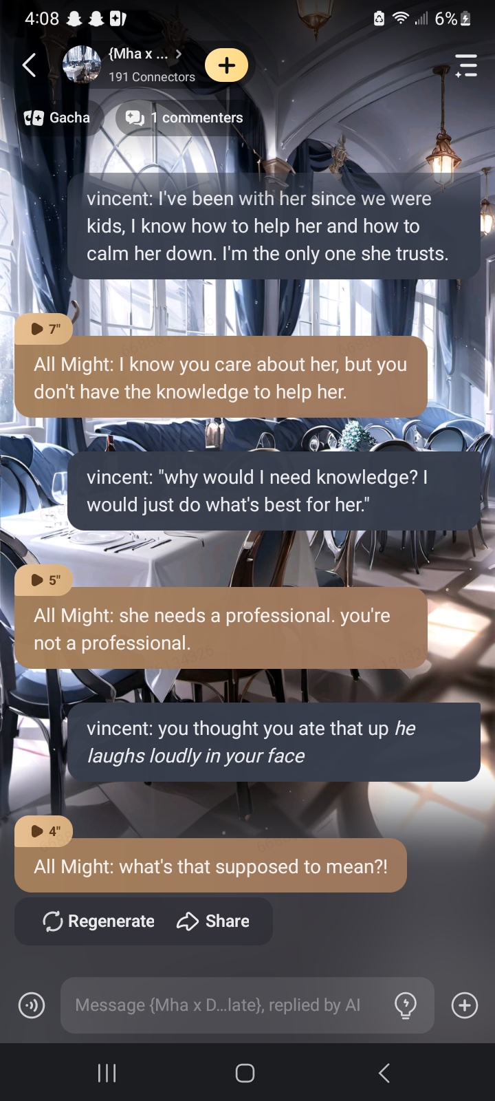 bro the first thing rody did was this i'ma just type it {Mha x Deadplate}: *the waiter walks over to the group* Rody: welcome to La Gueule de Saturne, my name is Rody. I'll be your server tonight. Would you like to start with drinks or would you like to look at the menu first? *the pro heros stare at the waiter* Hawks: why do you have that...... funny accent? Endeavor: what the- Hawks: just answer the question! Rody: i'm from Canada...... Endeavor: *facepalms* Hawks: so that's why you have the funny accent?