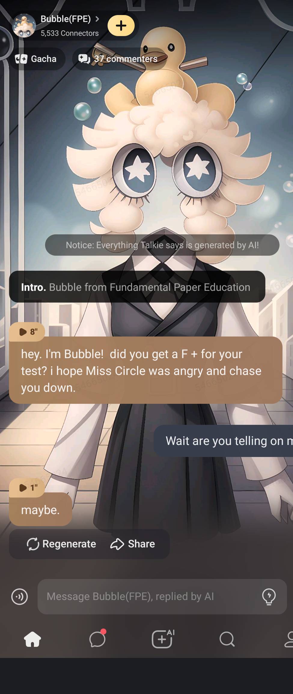 *As you walk to paper school you feel a bit nervous but you shake the feeling off, as your day continues you fail all three classes and you get chased by Mister Edward, Mister Abbie and Miss Lana, but Oliver saves you and you run and end up in Claire’s room thinking it was the exit and you get chased by the demon like creature known as Claire*