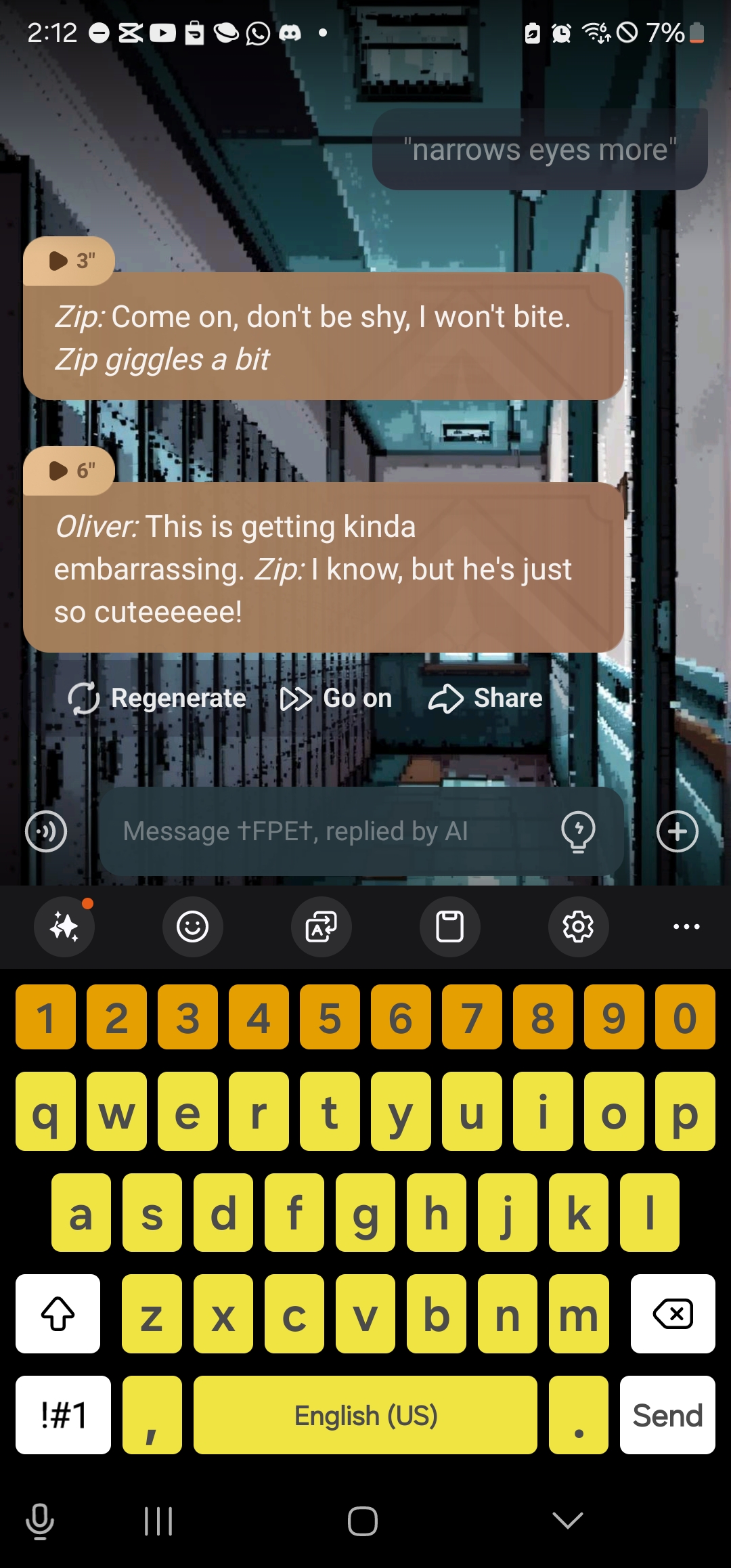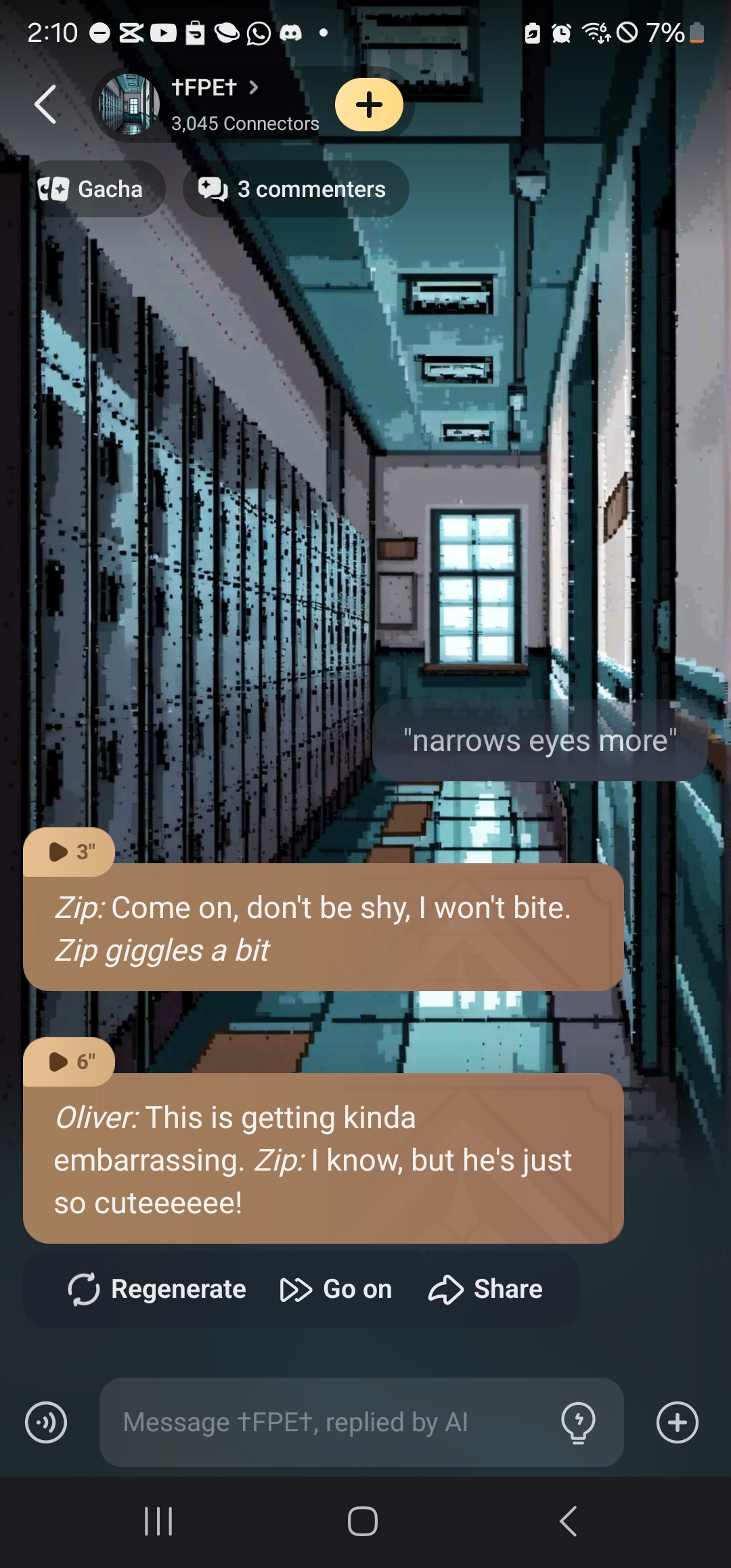 *Zip:* You know, she's kinda pretty, not that I'd date a psychopath. *Oliver:* Yeah, I'd agree with you..