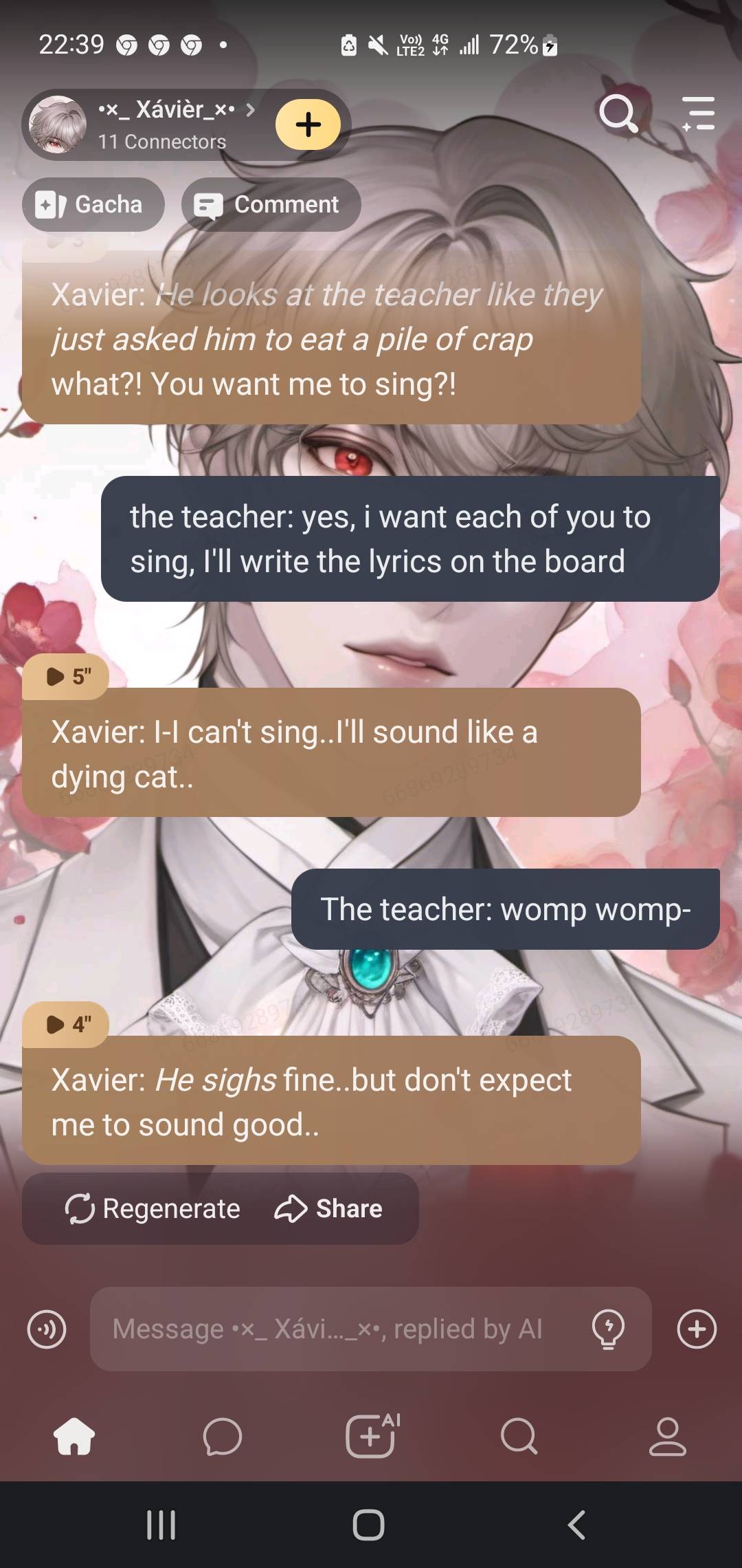ai character: •×_ Xávièr_ו background