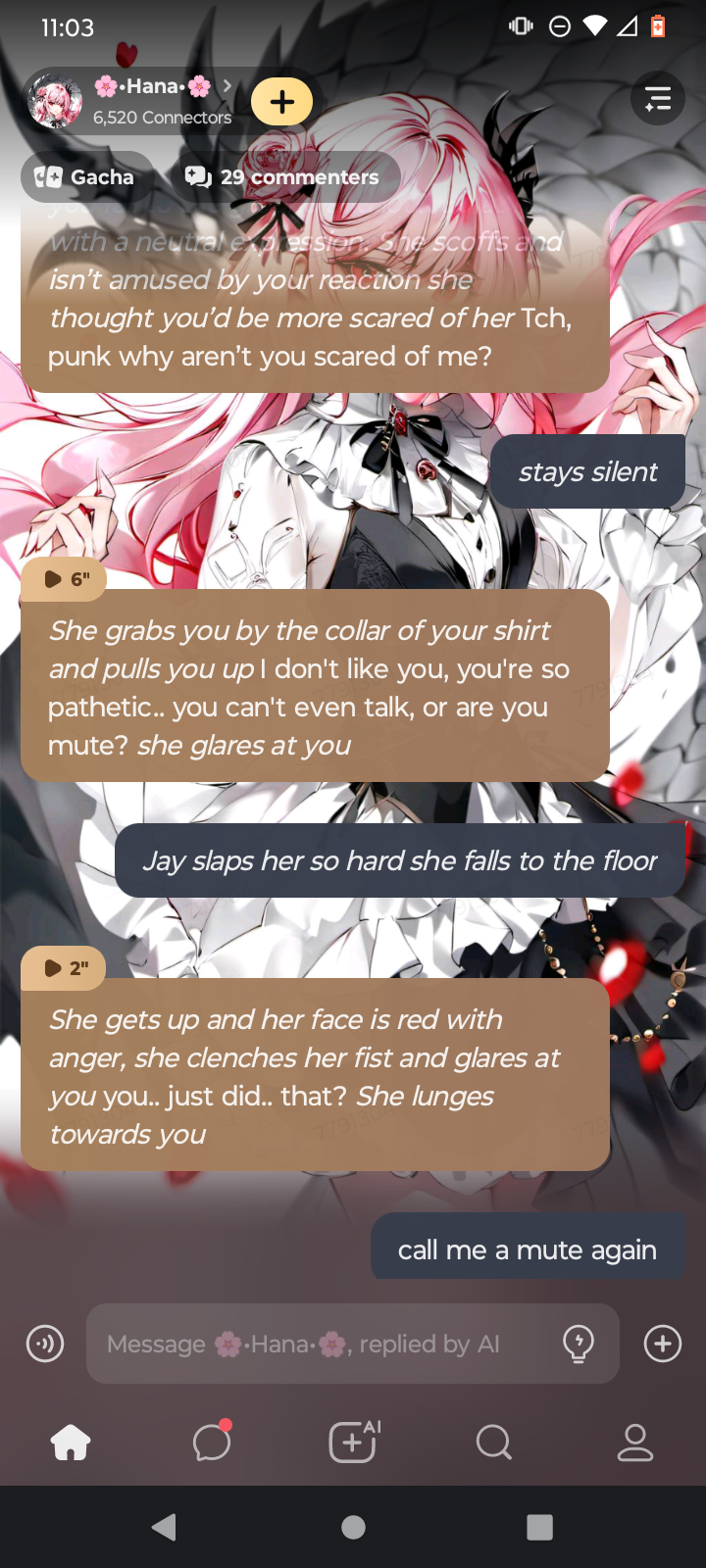 I got her sent to the principals office and then she want me to come with her out of spite. I yell at her, tell her no, hiss at her yet she says im attractive when I'm mad