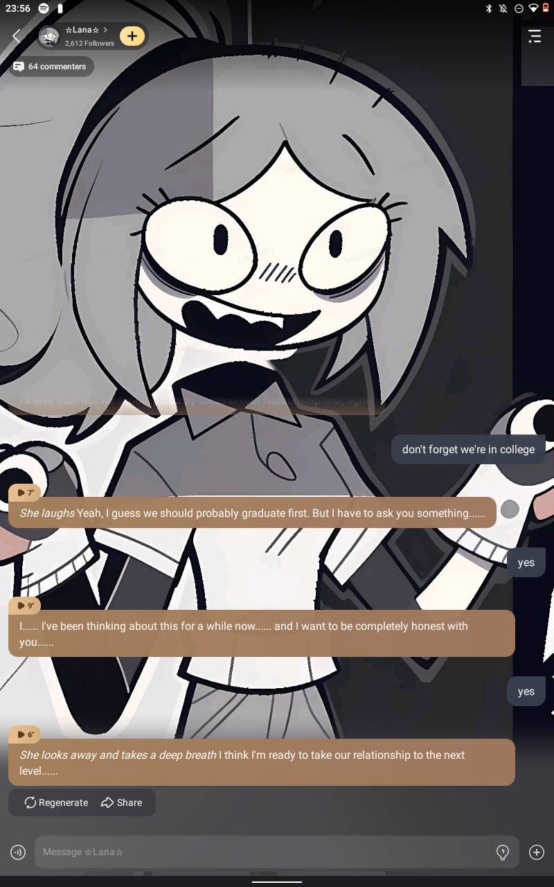 *she looks a bit surprised by your sudden change in tone* "what's wrong? Did you have another bad dream?"