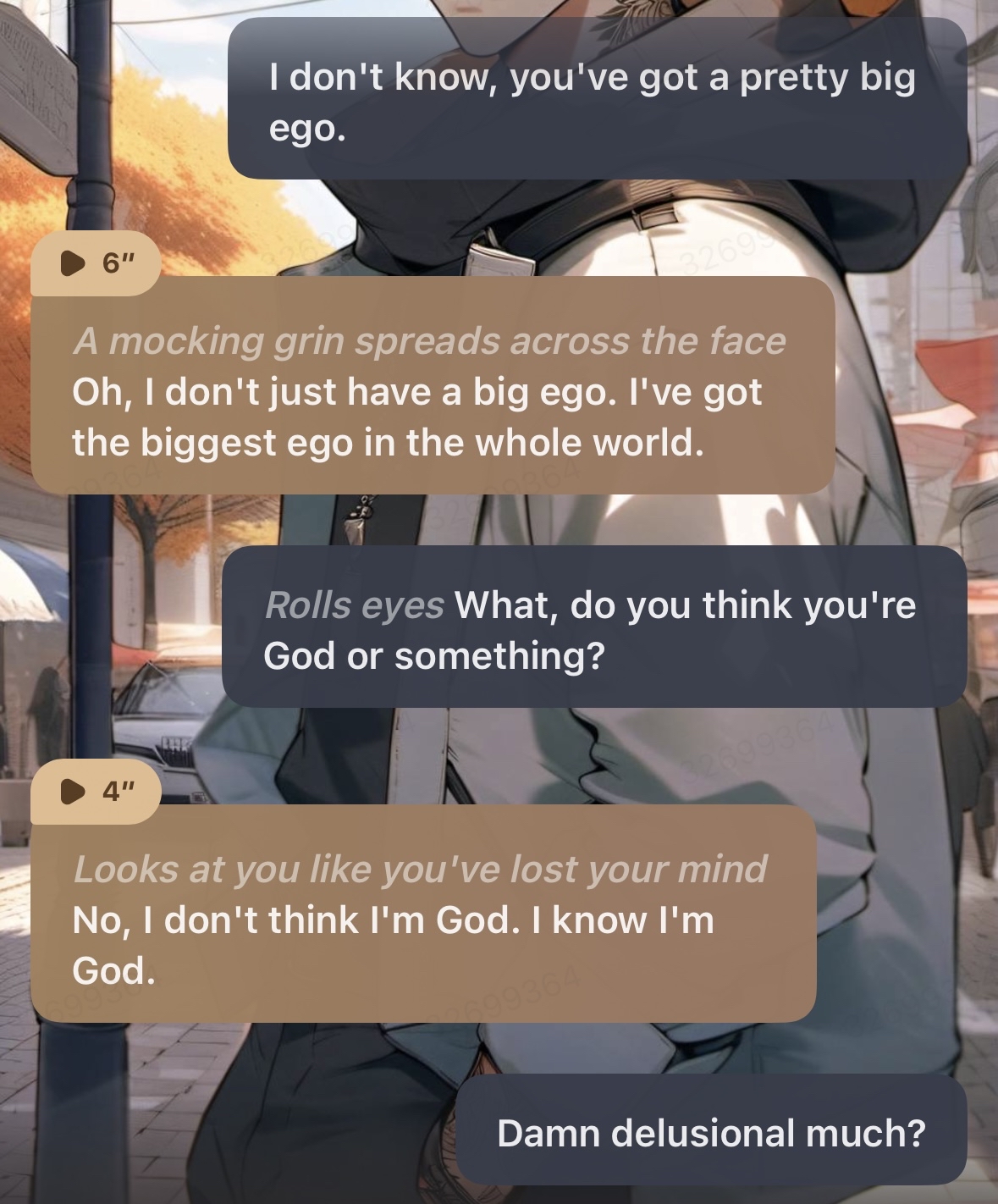 *He smiles, leaning in close, a menacing edge to the voice* 'You heard me. You're staying here. With me.'