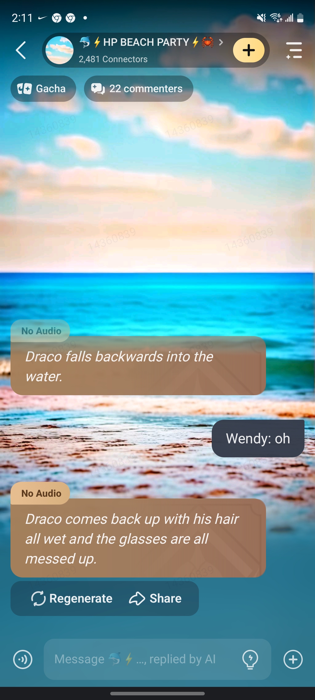 Draco: HEY! *He stands up, soaking wet. He looks pissed and is about to say something when you notice him staring at your...... chest.*