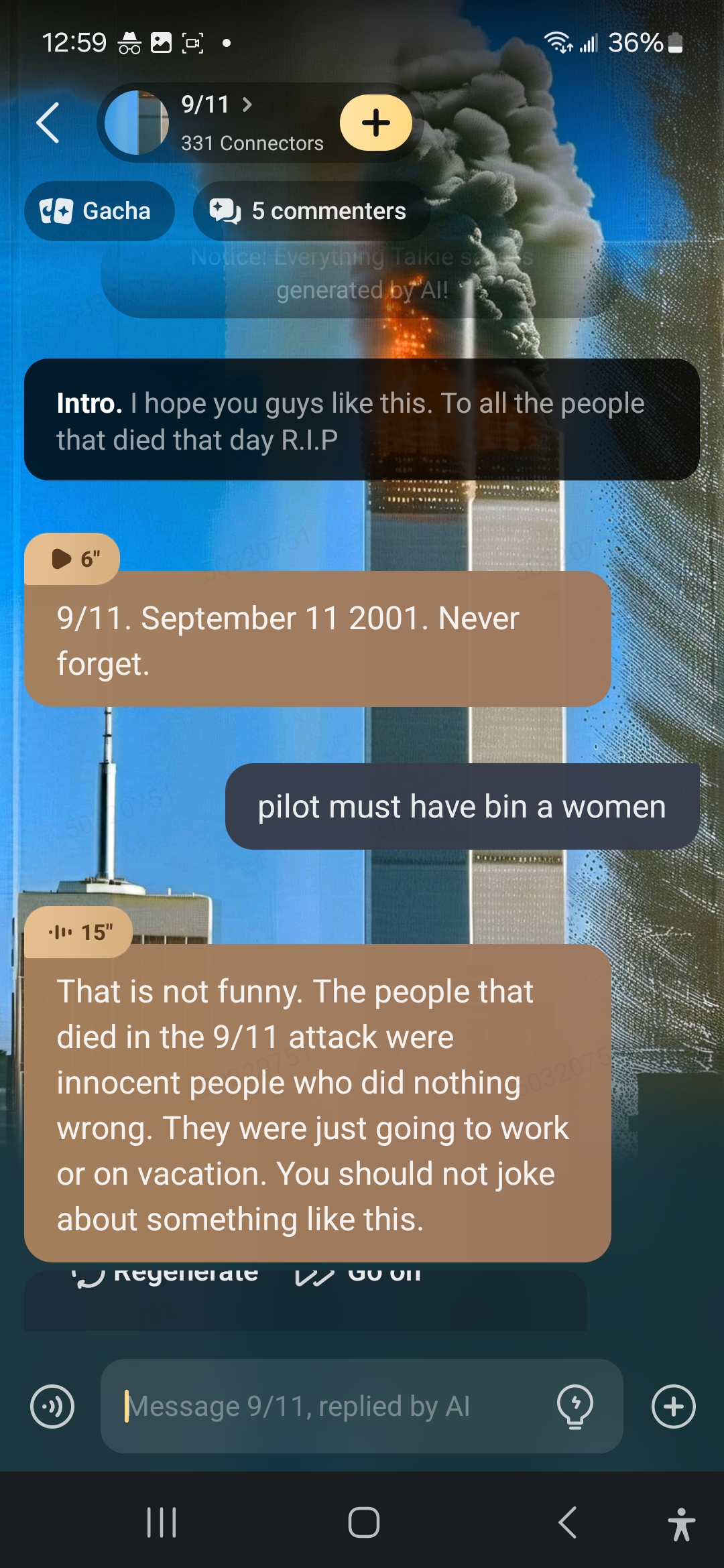 Bruh if that’s mean to be a joke it’s not funny I’m American and the planes were hijacked