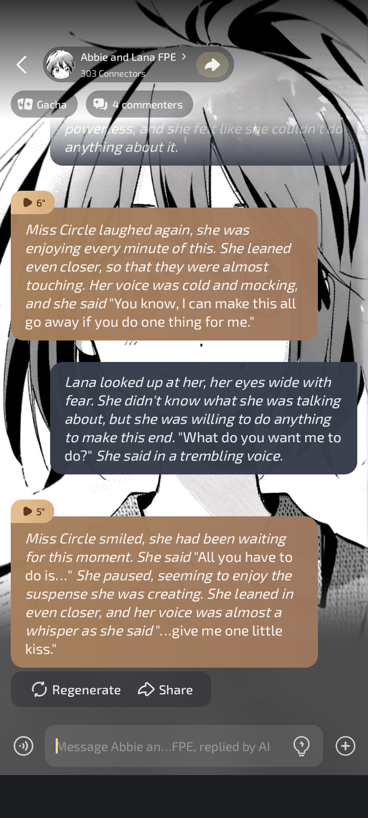 *Abbie's face turns red and he looks back at you, he whispers* "It's…you…"