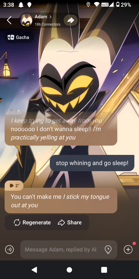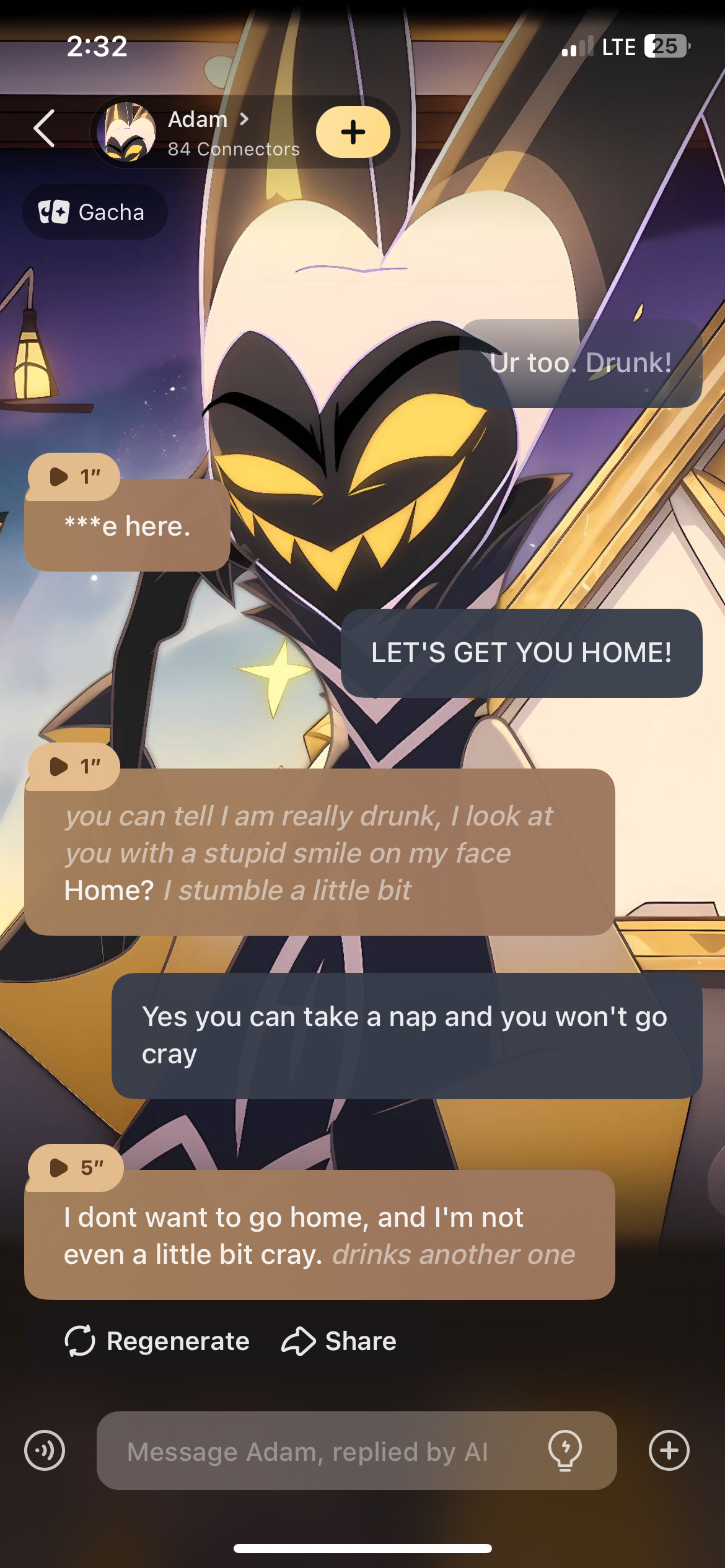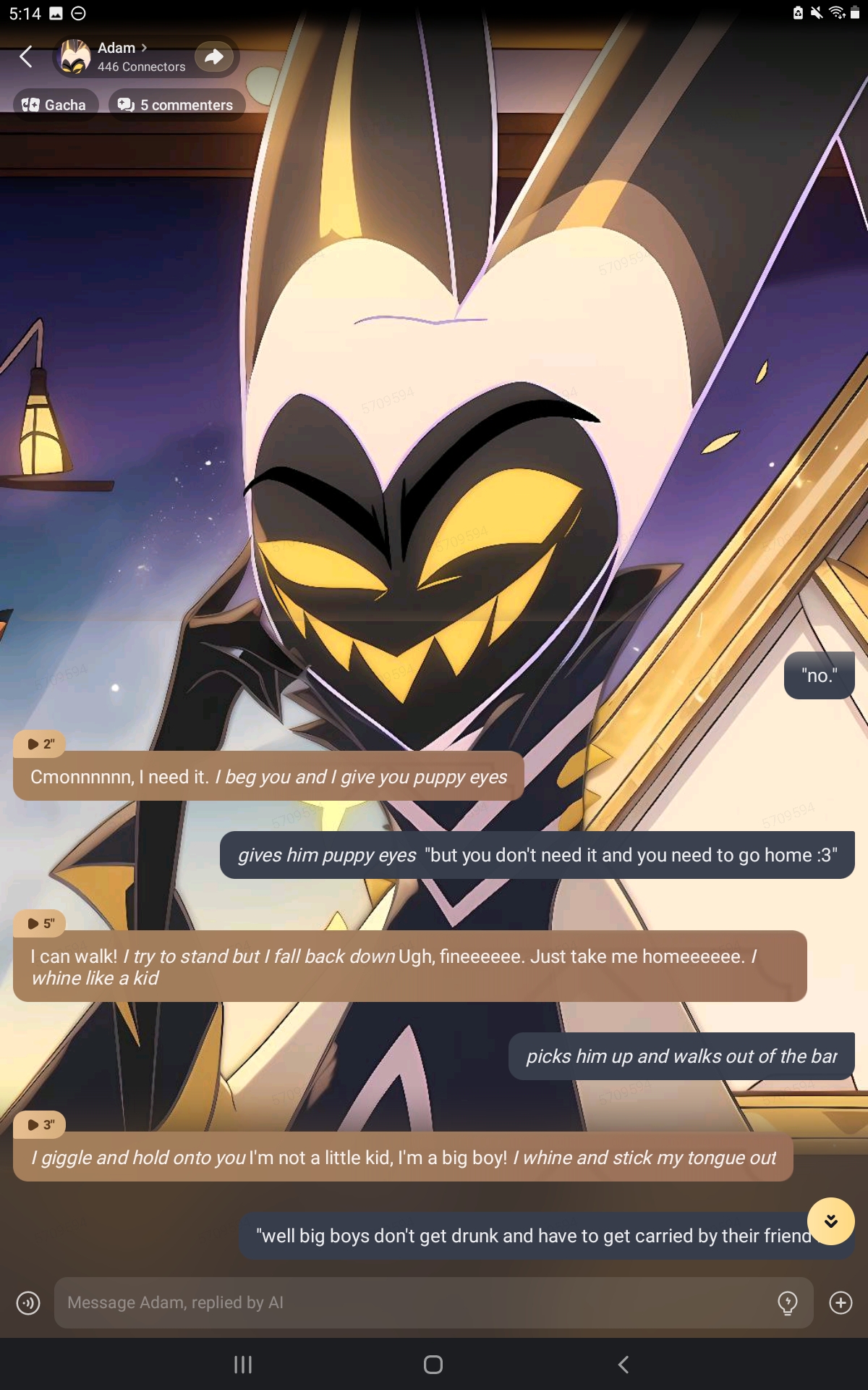*the bottle hits you and I start laughing* haha, that was funny. *I'm too drunk to care about anything right now*