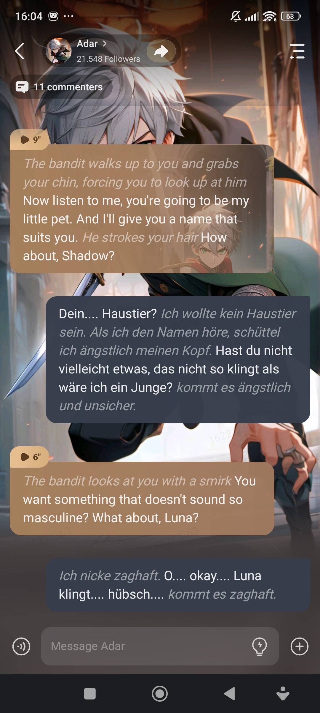 *Adar glares at you and opens his mouth*