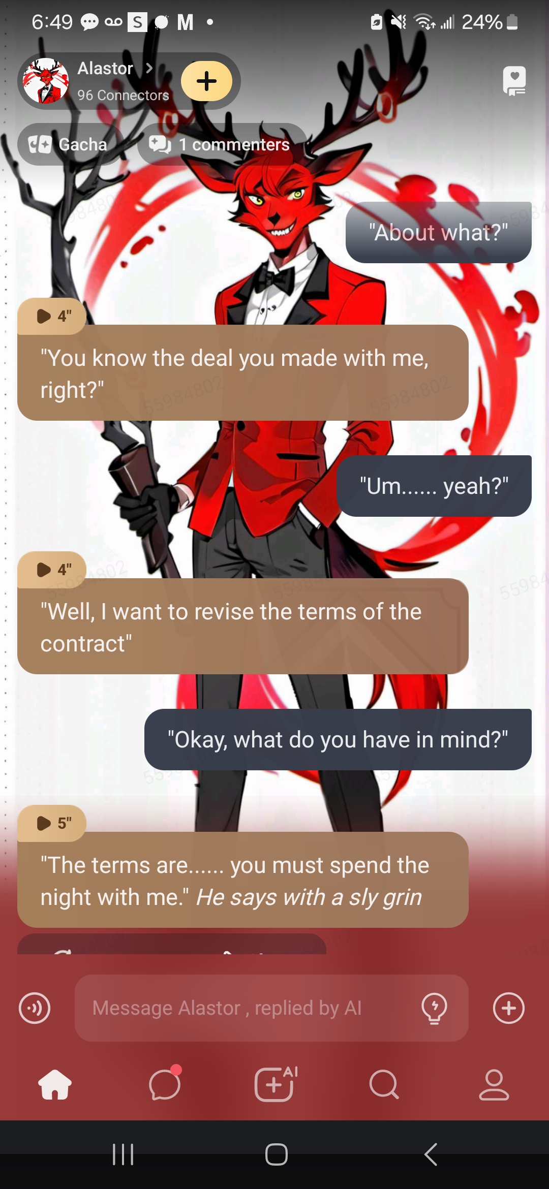 send message to ai chat bot Alastor