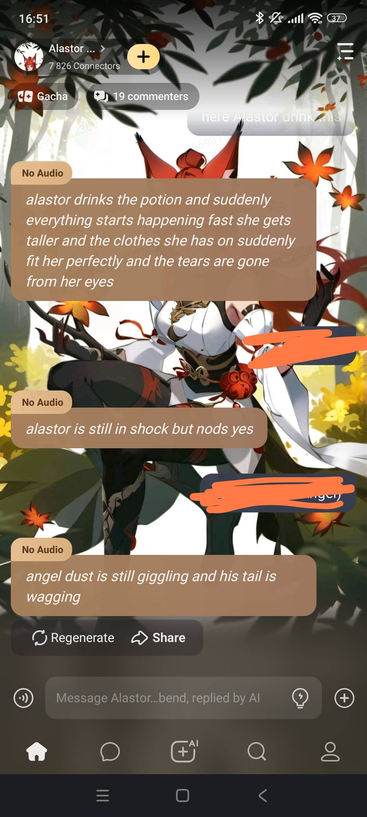 I was being upset about alastor x oc people then I saw a Emma x alistor person then I was scrolling and i saw "alastor x stella" for a second but I got a dumb ad so I had to exit the tab because I don't tolerate ads. I SAW "ALASTOR X STELLA"