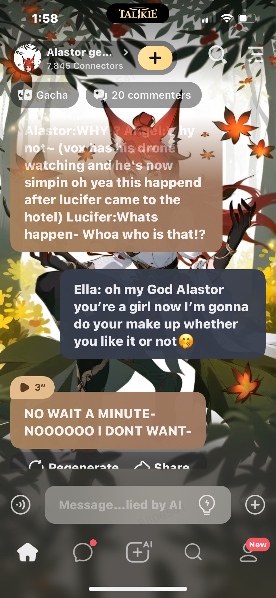 me and Angel started teasing him and one of things I said to Alastor was: "I HOPE YOU'RE WEARING A BRA-" while wheezing lol