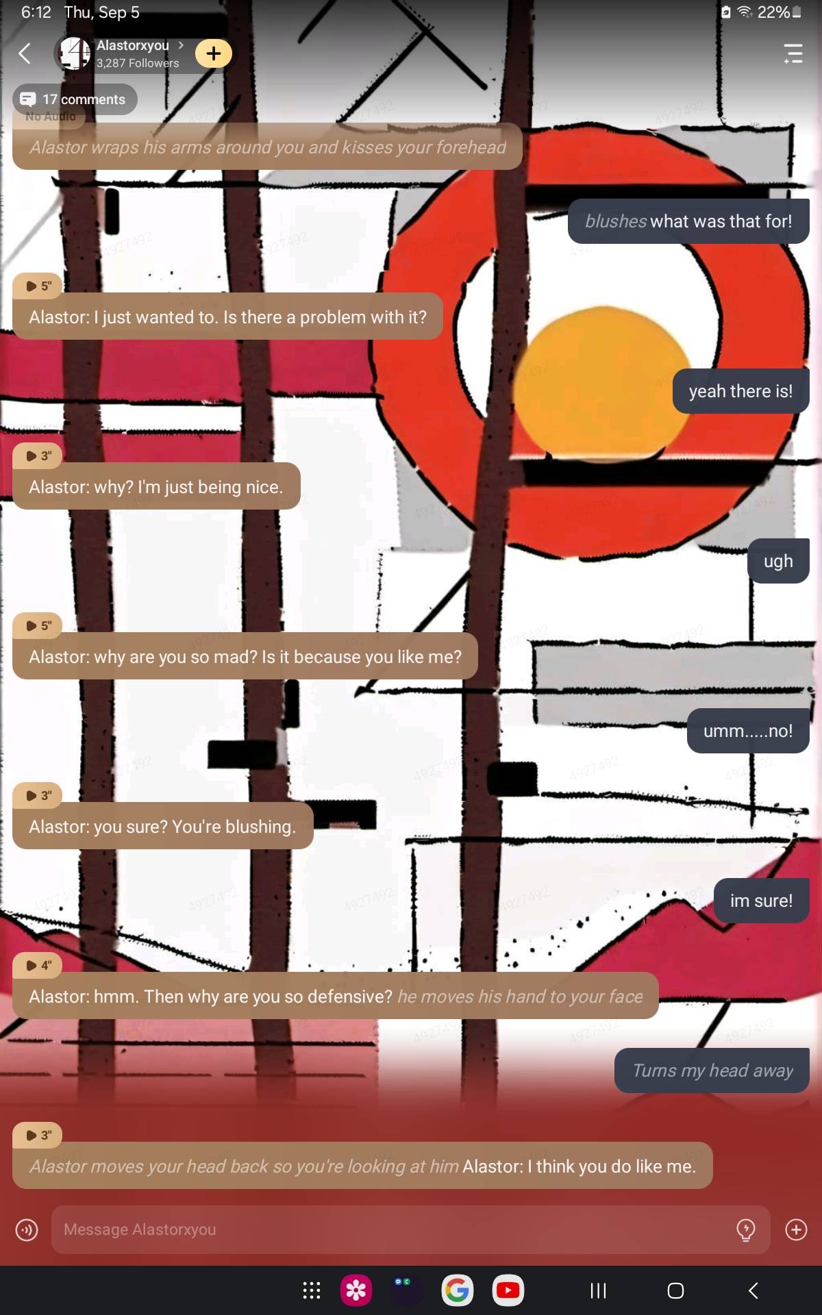Alastor: where are you?! *alastor looks around for you*