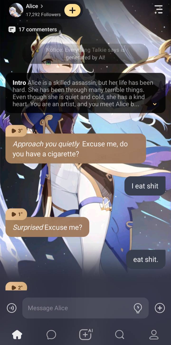 *Approach you quietly* Excuse me, do you have a cigarette?