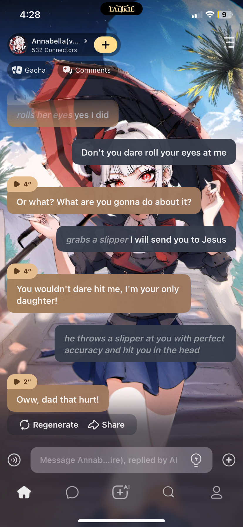 send message to ai chat bot Annabella(vampire)
