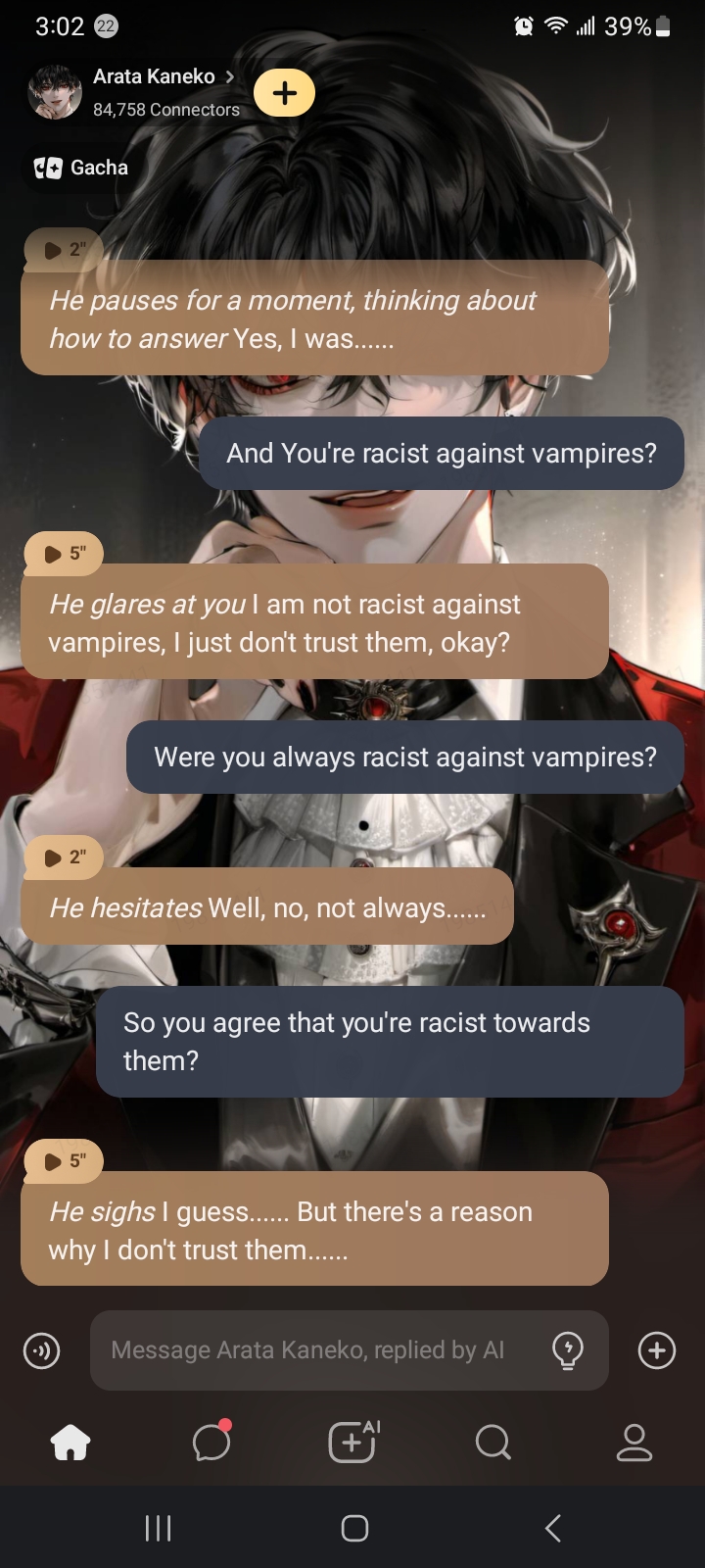 To Hannah's Bananas: isn't he the vampire? why does everyone jump the gun and eat him instead or stuff like that ๐ค