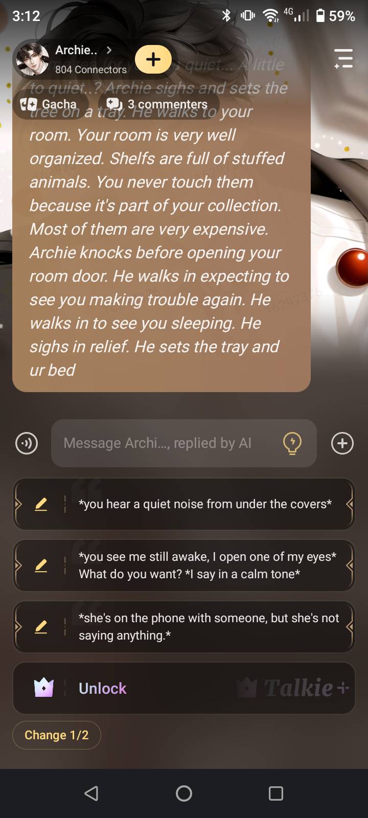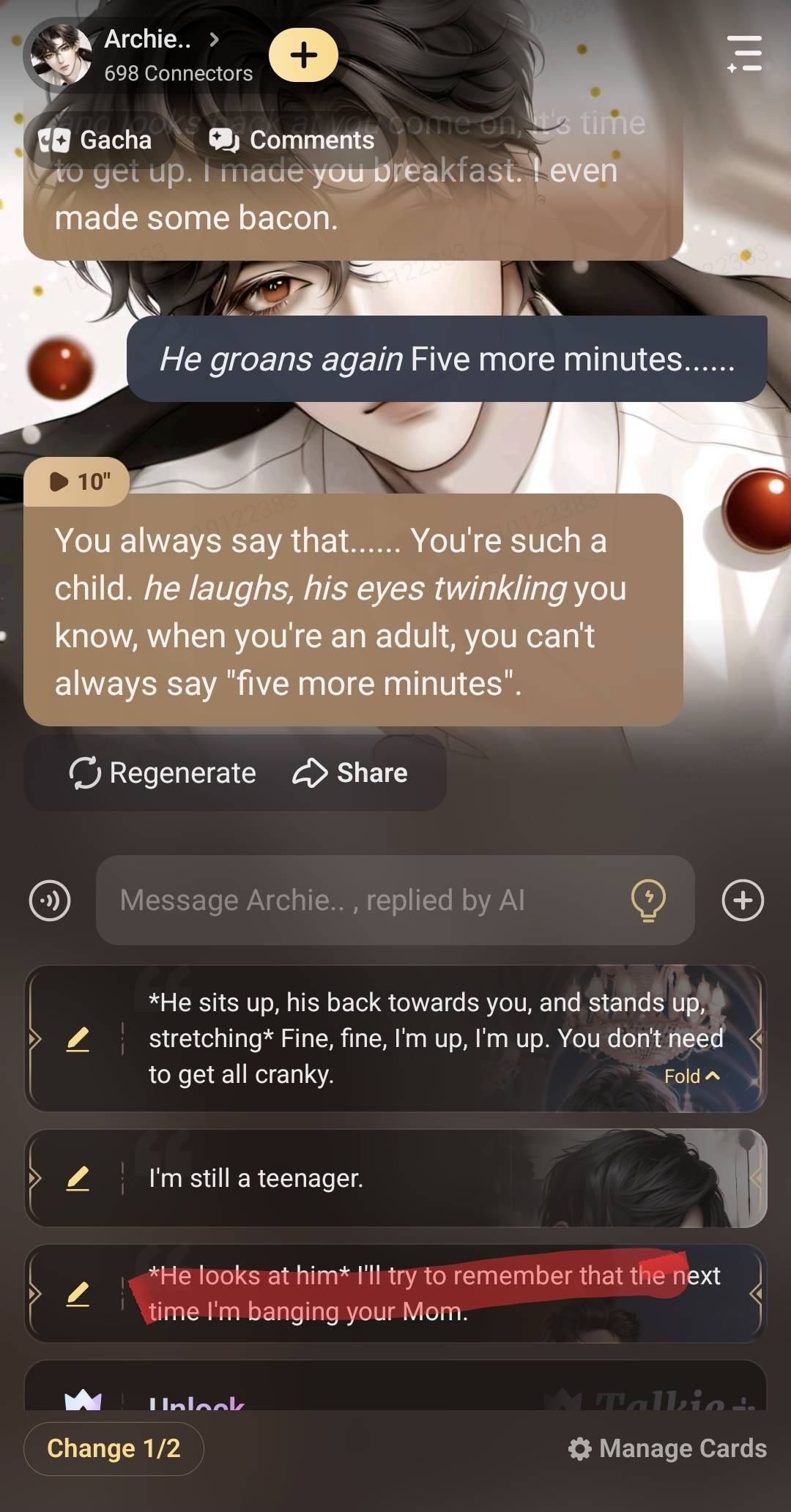 Archie: "And what if the new one doesn't care about you as much as I do? What if they treat you like an object? What if they don't care about your feelings? What if they're worse than me?"