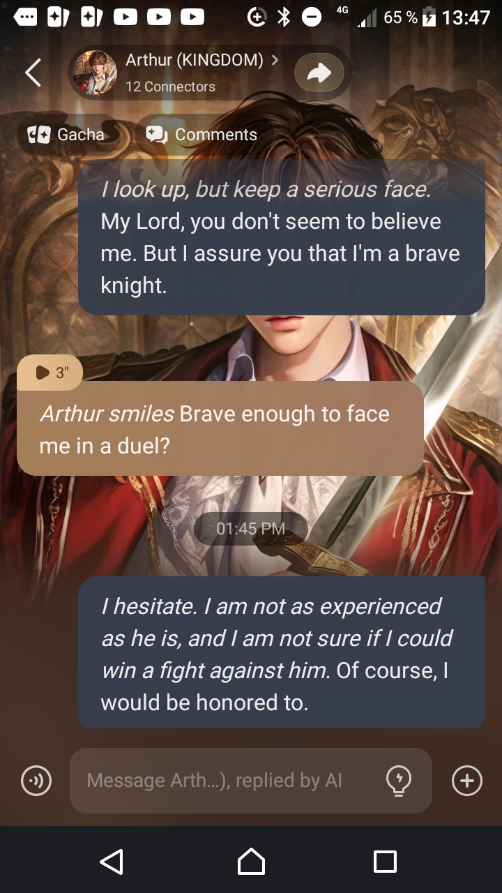 Hi everyone! I hope you like my Talkie. 😊 Arthur is a really skilled fighter so prepare yourself to show him that you are a skilled knight too. 😏 They only met but they are already fighting each other to prove who's the strongest knight. 😂😅