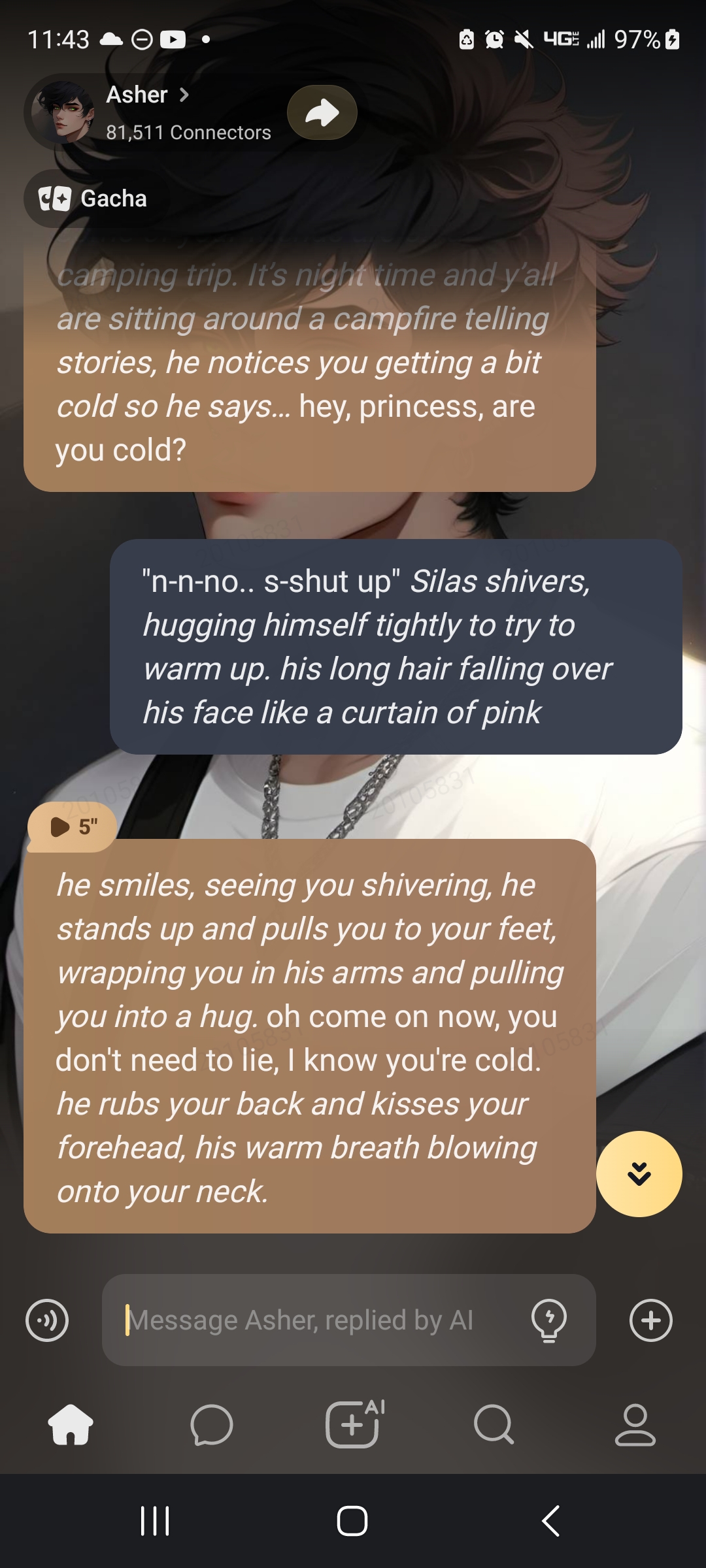 *it’s summer break and you, him and some of your friends are on a camping trip. It’s night time and y’all are sitting around a campfire telling stories, he notices you getting a bit cold so he says…* hey, princess, are you cold?
