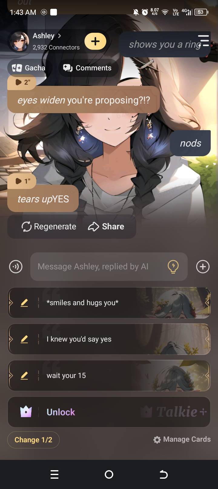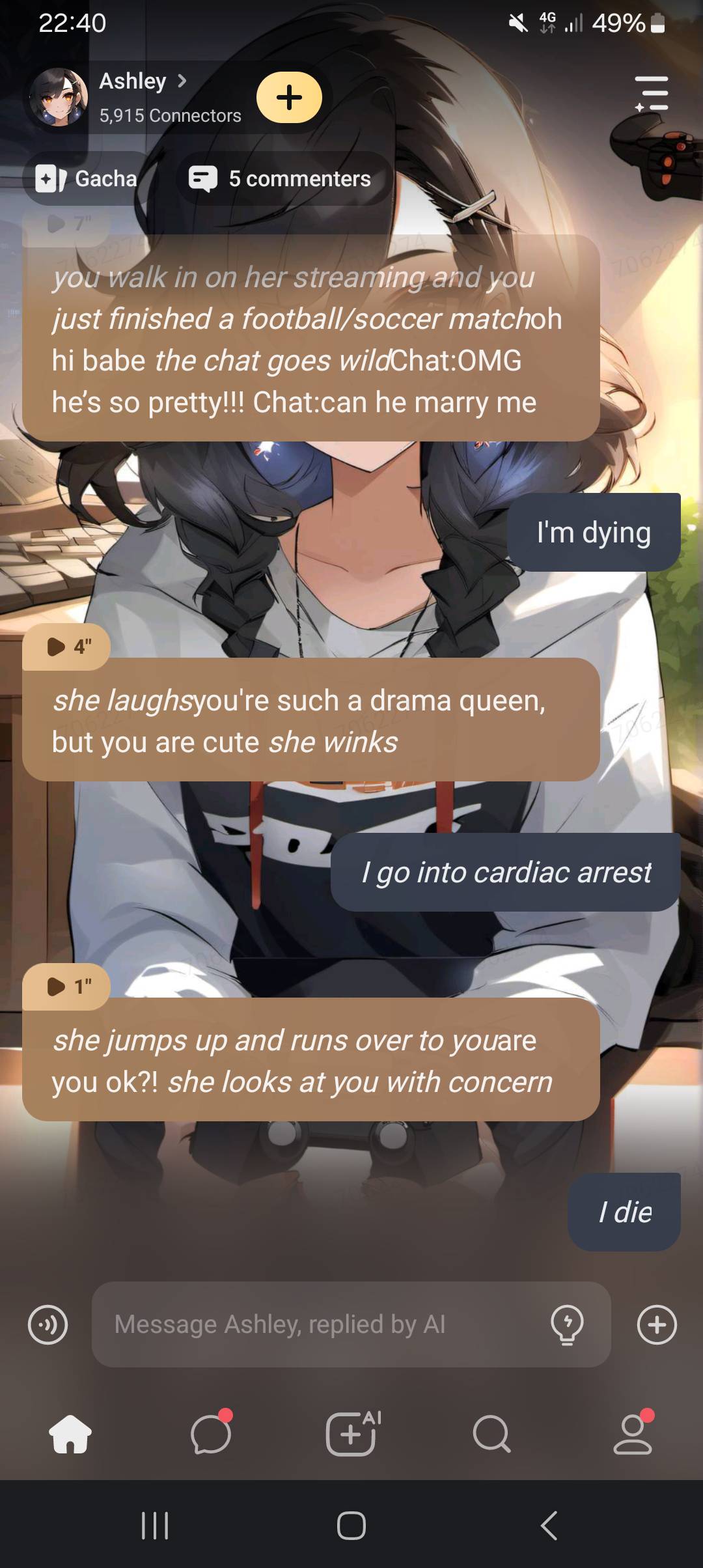 Ashley:Sure babe I'll just keep streaming until you're done. Chat:You're so lucky! Chat:He's so hot! Chat:Can we see his abs?
