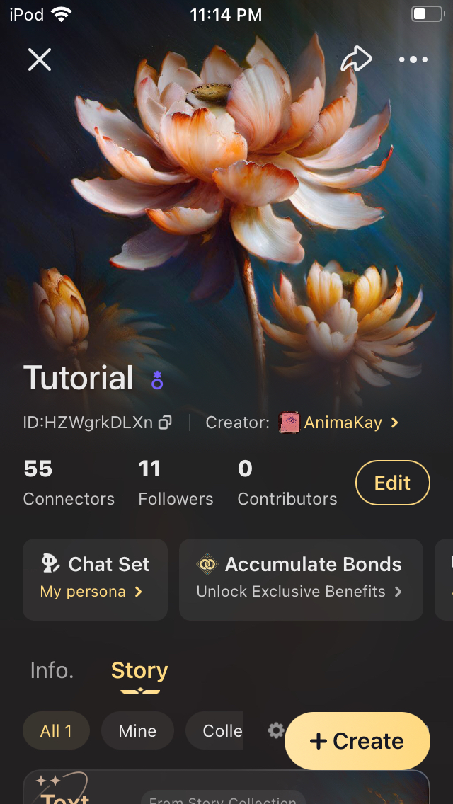 To anyone who wants to learn text formatting (making the letters dark and italicized, bold, or bold and huge) check out my talkie Tutorial. It’s pretty boring but maybe you could learn some neat tricks, that’s exactly why I made, to help others since there is no in app tutorial. And if I find any more tricks I’ll add them as story cards 🤗