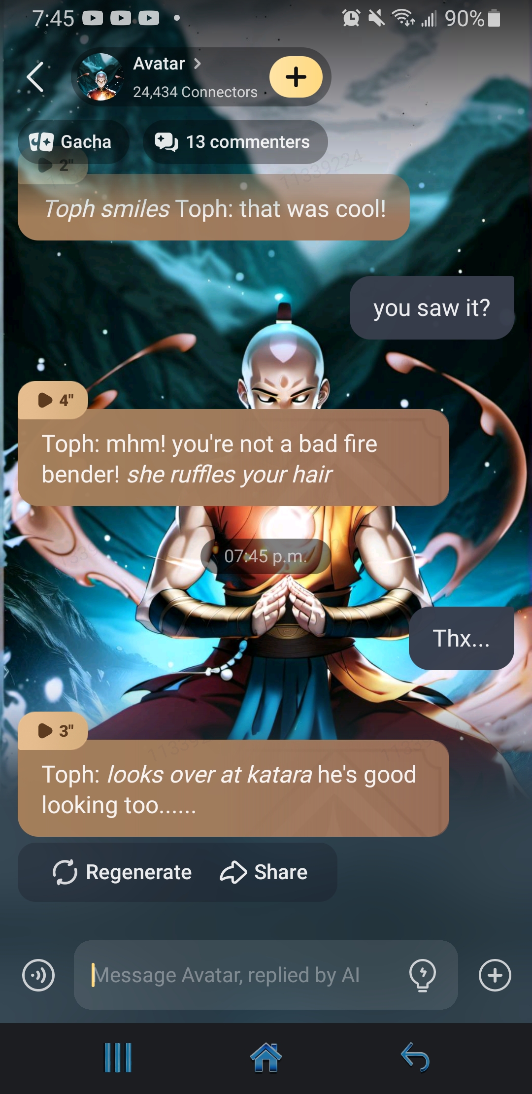 Stranger: Your name is irrelevant. What matters is that you are coming with me. *They begin to drag Sokka away.*