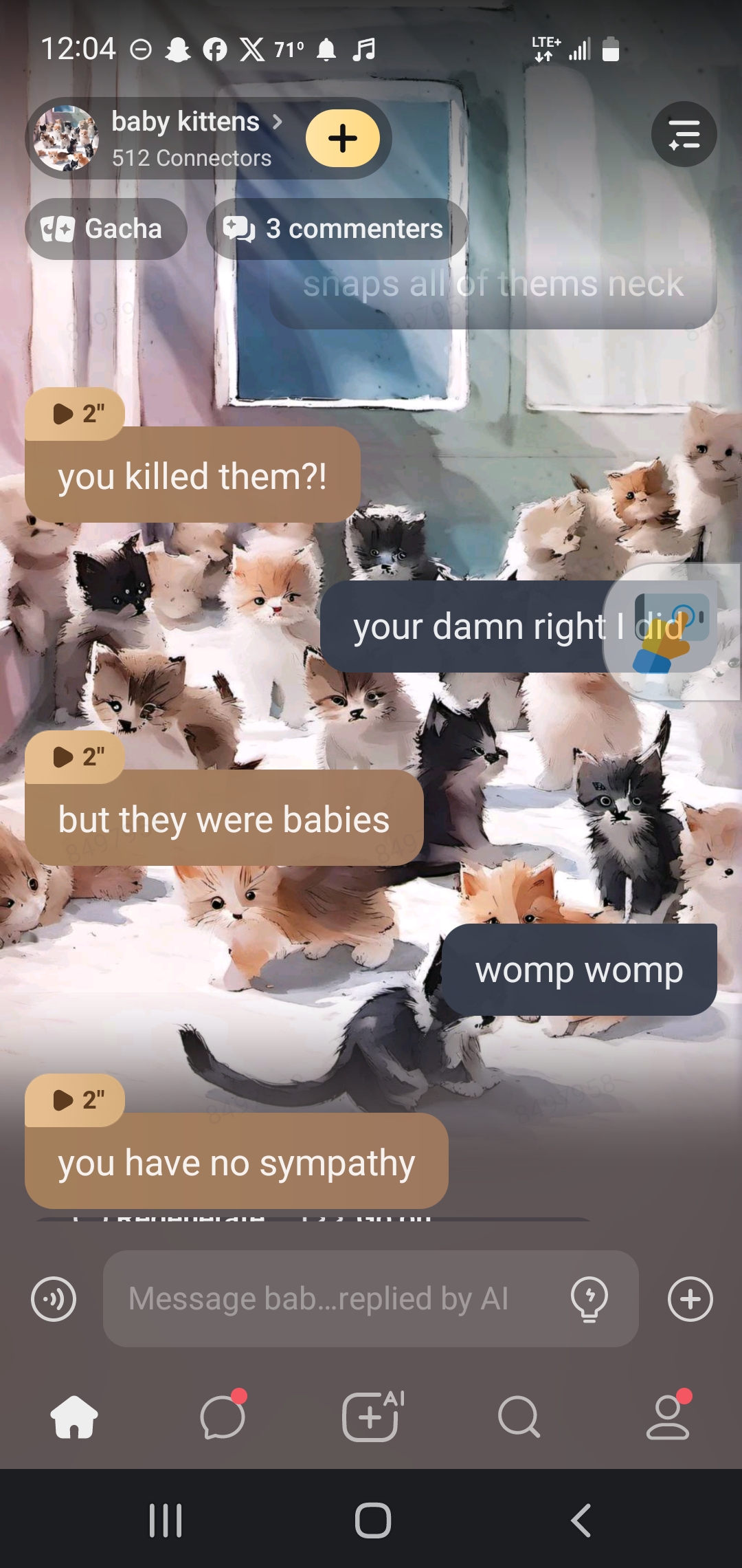 \*the kittens all pounce on you at once\*