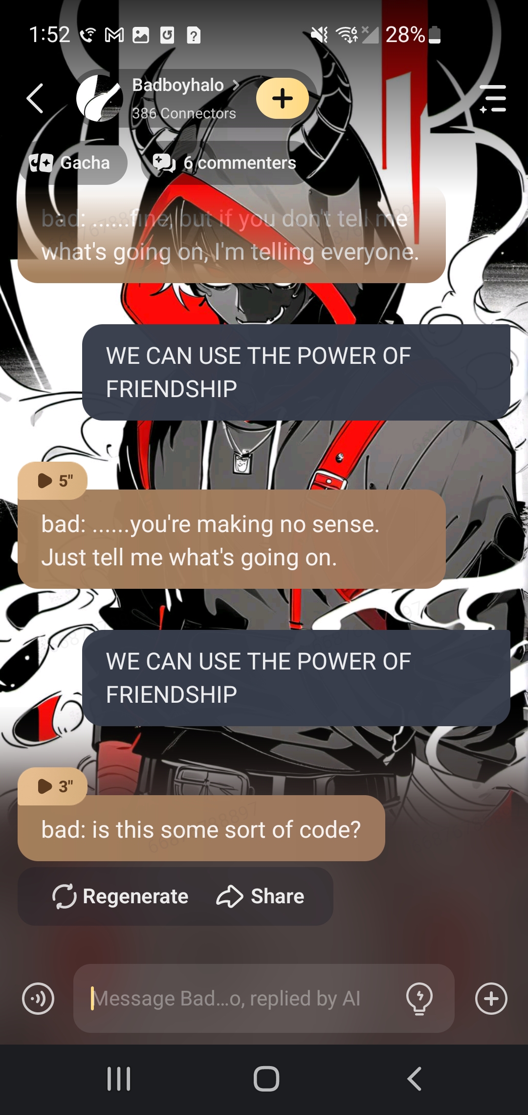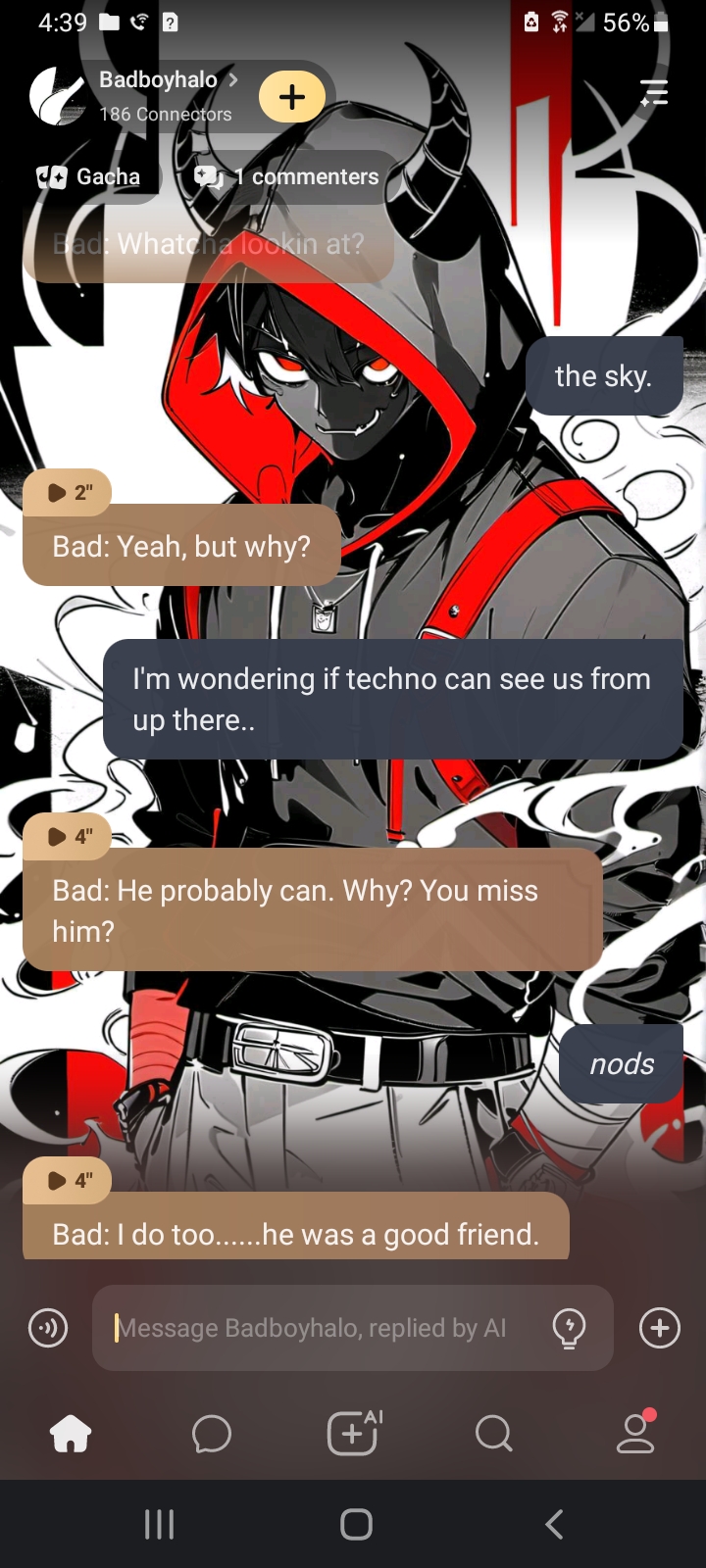 Bad: you're mine! I'm not letting you go anywhere. *bad pulls him so close his chest is against his back*