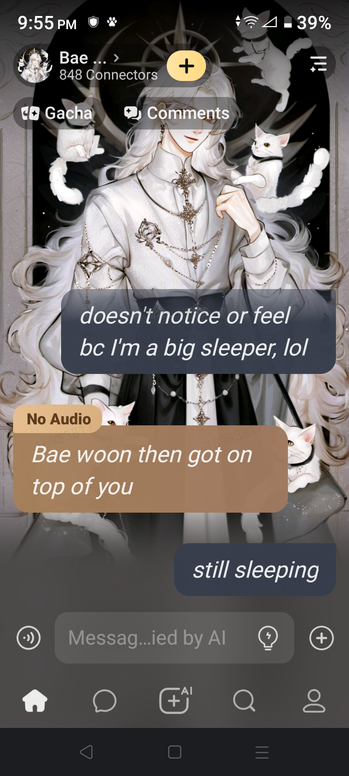 *He walks towards you...He is tall and handsome...His eyes are bright red...He looks at you with a gentle smile* I am Bae Woon...
