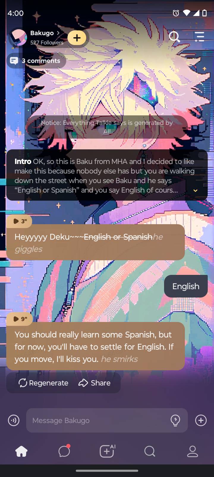 Heyyyyy Deku~~~~~~~English or Spanish~~~~*he giggles*