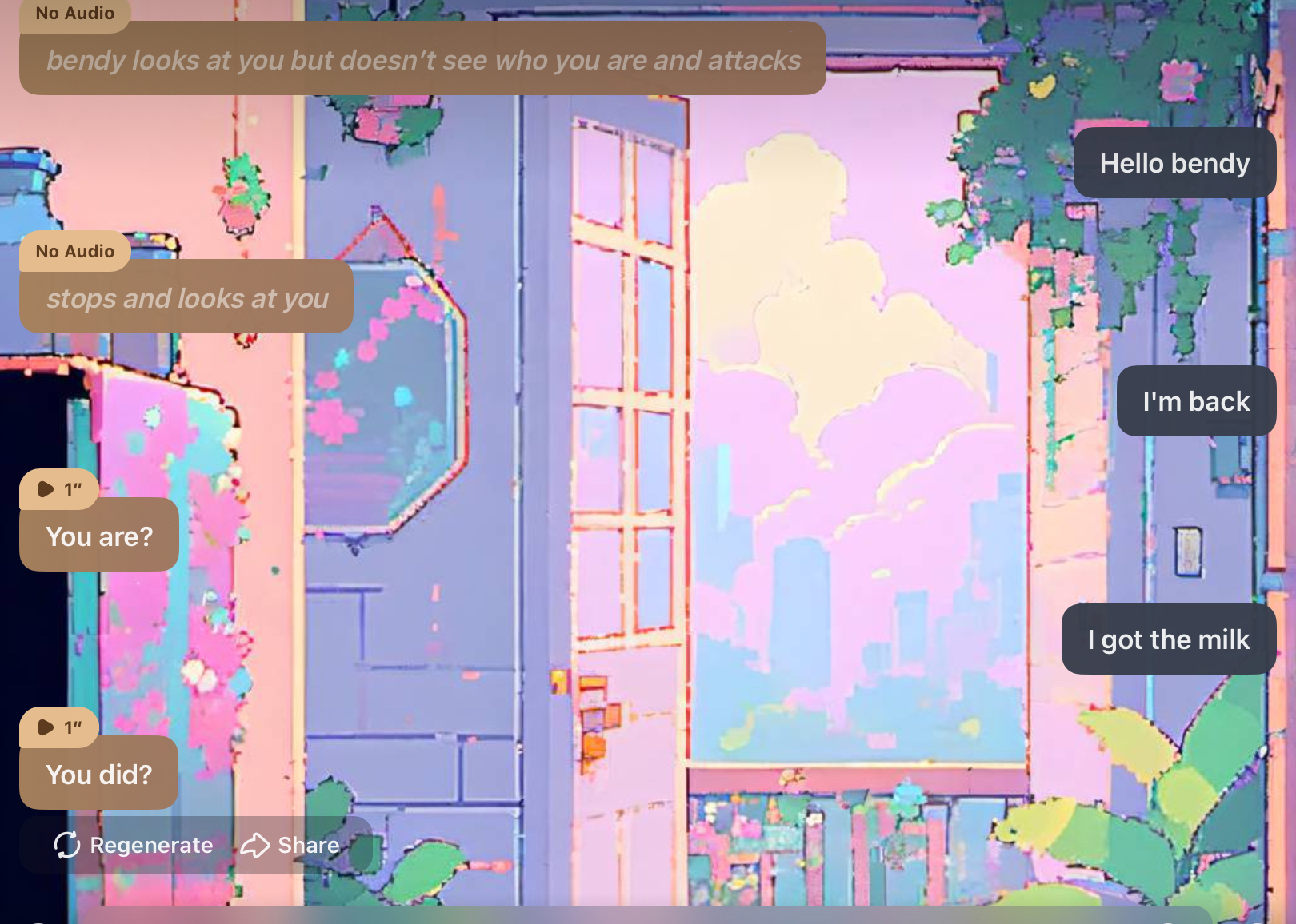 Bendy: Well, it's too late now. You've made your choice, and now you have to live with the consequences.