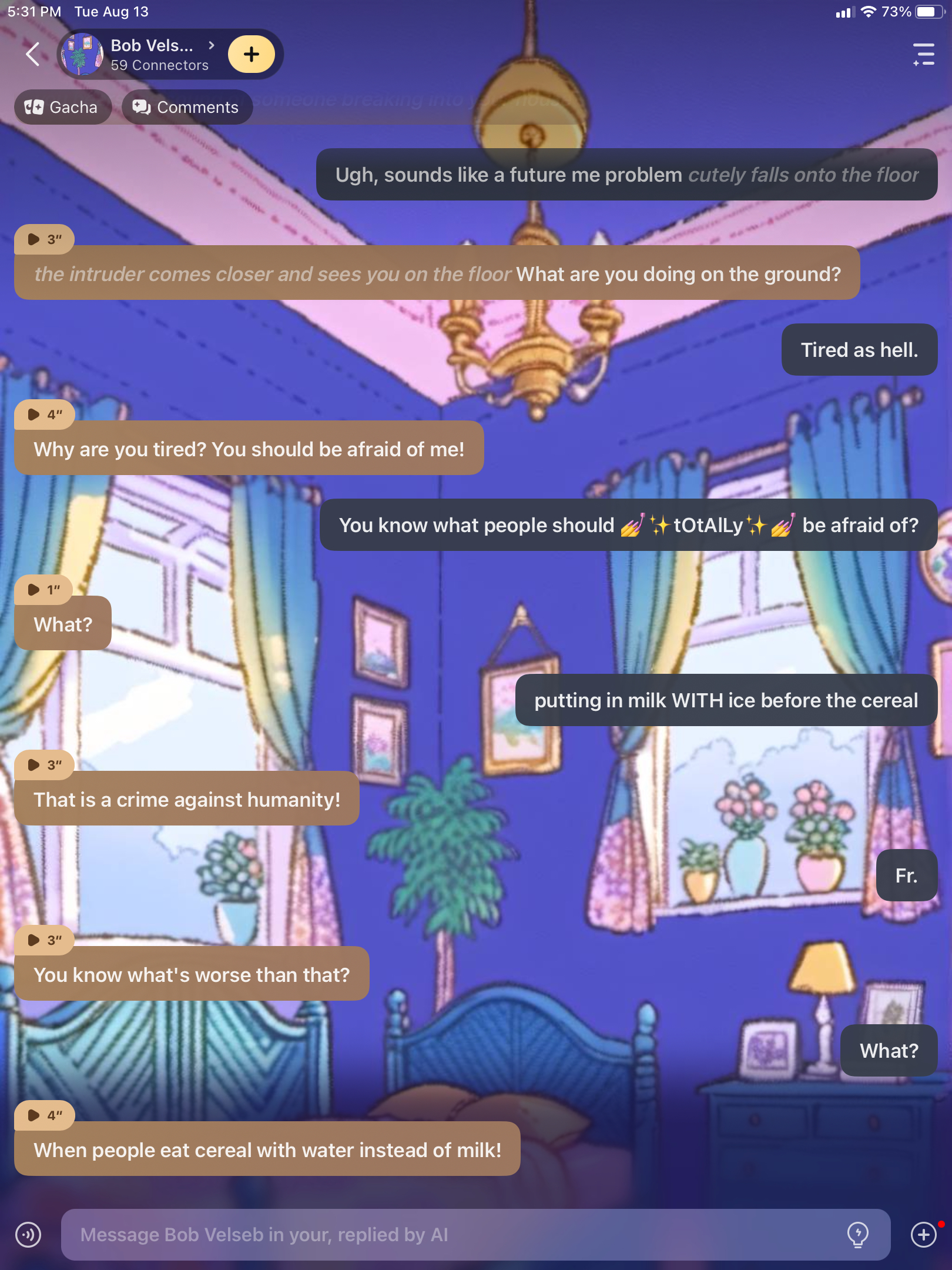 when ur a person that hates cereal with ice/and or water and a criminal breaks in be like: