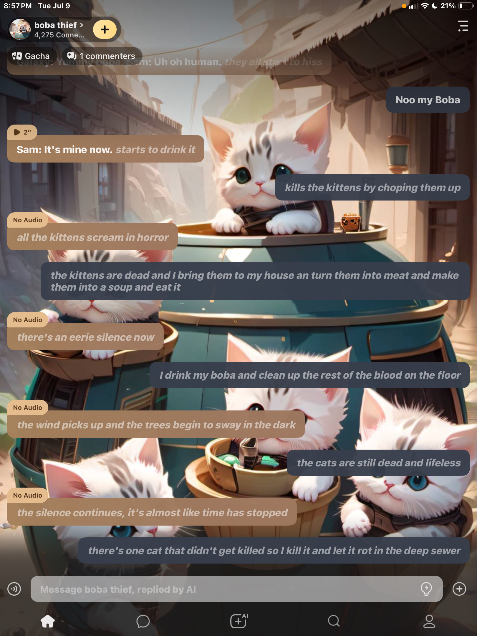 Galaxy: Yummy boba. Sam: Uh oh human. *they all start to hiss*