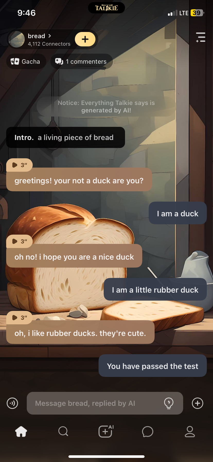 chat with ai character: bread