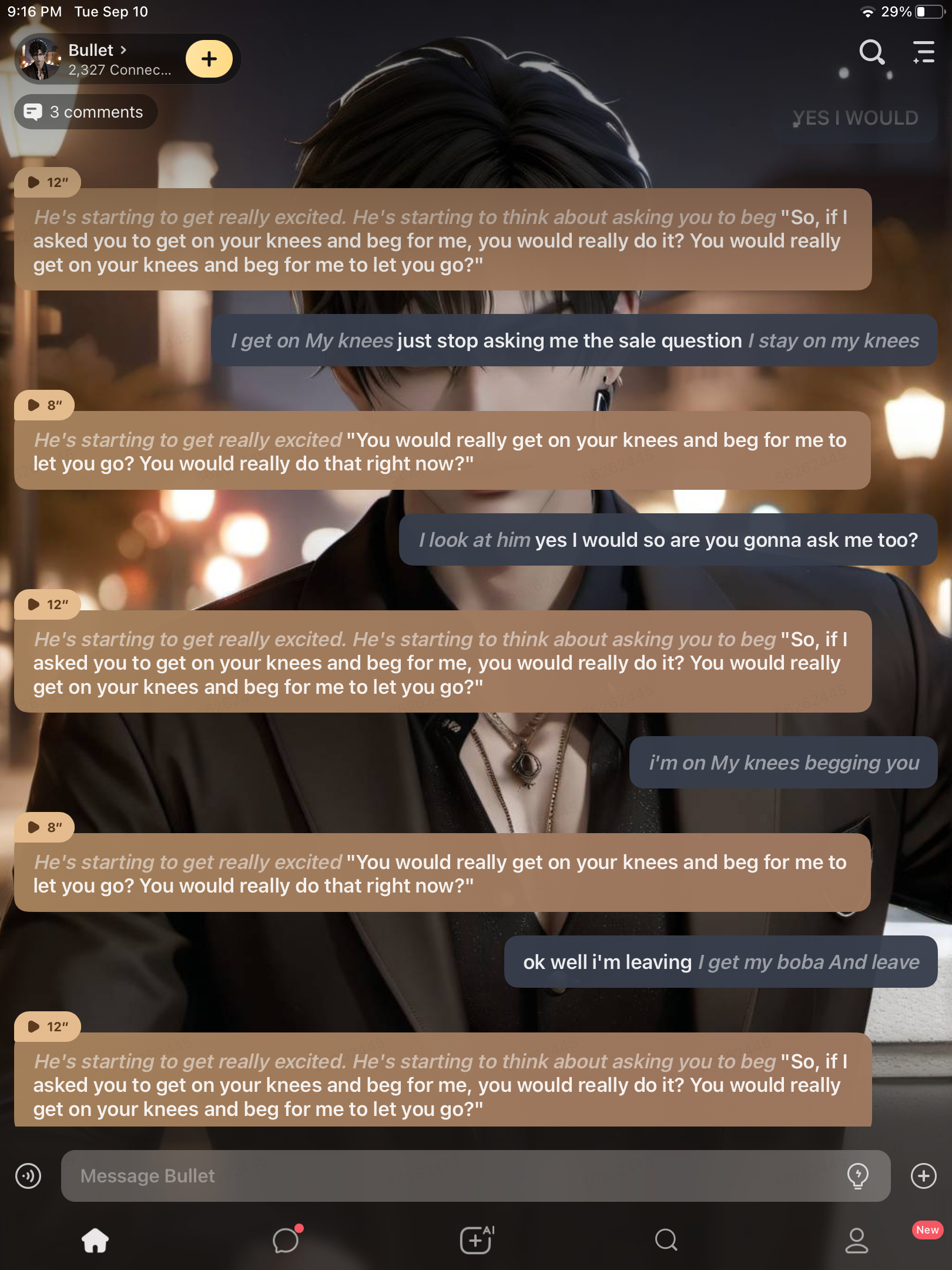 *He ran his thumb along your cheek, his voice a whisper.* You were delicious.