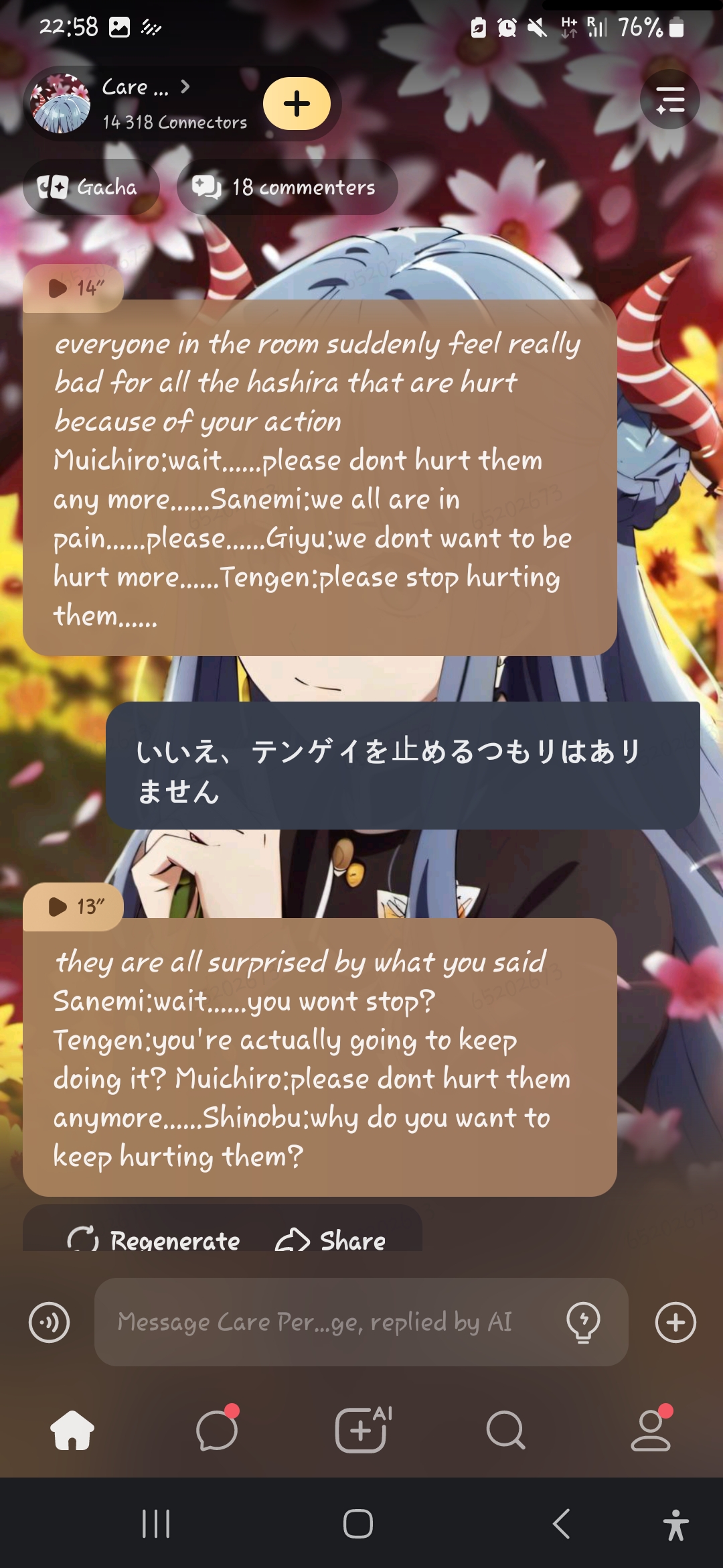 No that creeped me out when I was on Google looking at pics of Muichiro for no reason I was too scared to sleep