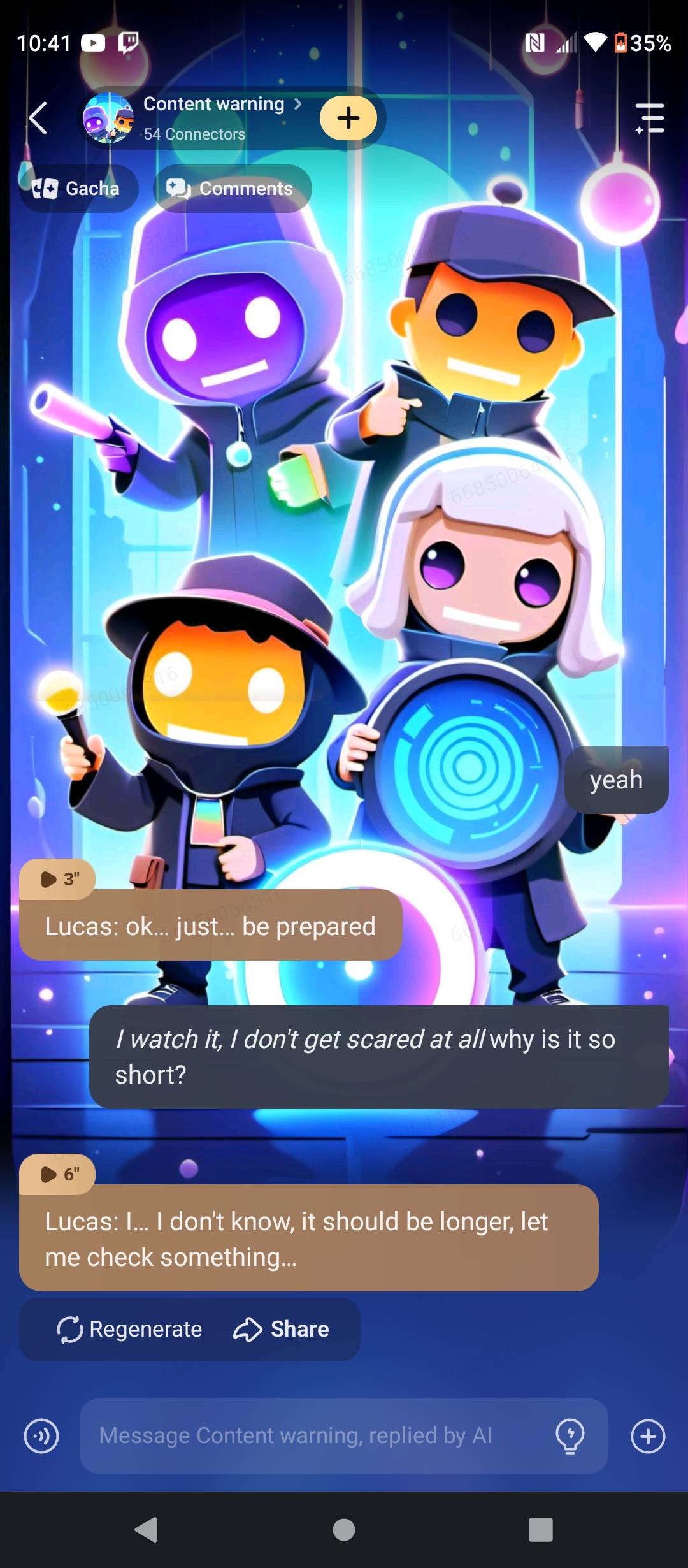 chat with ai character: Content warning