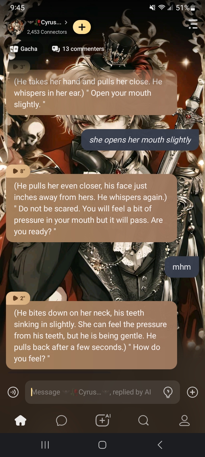 (He sighs) " They will be safe for now.. but you will become a vampire. "