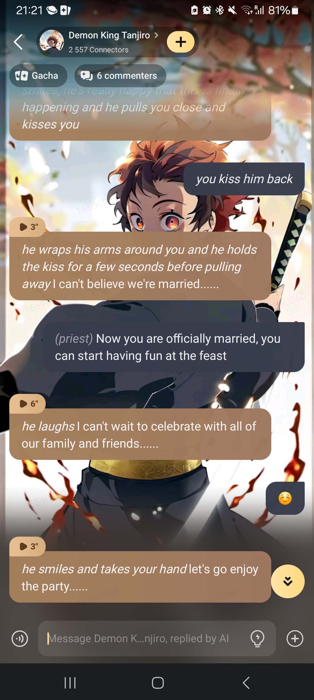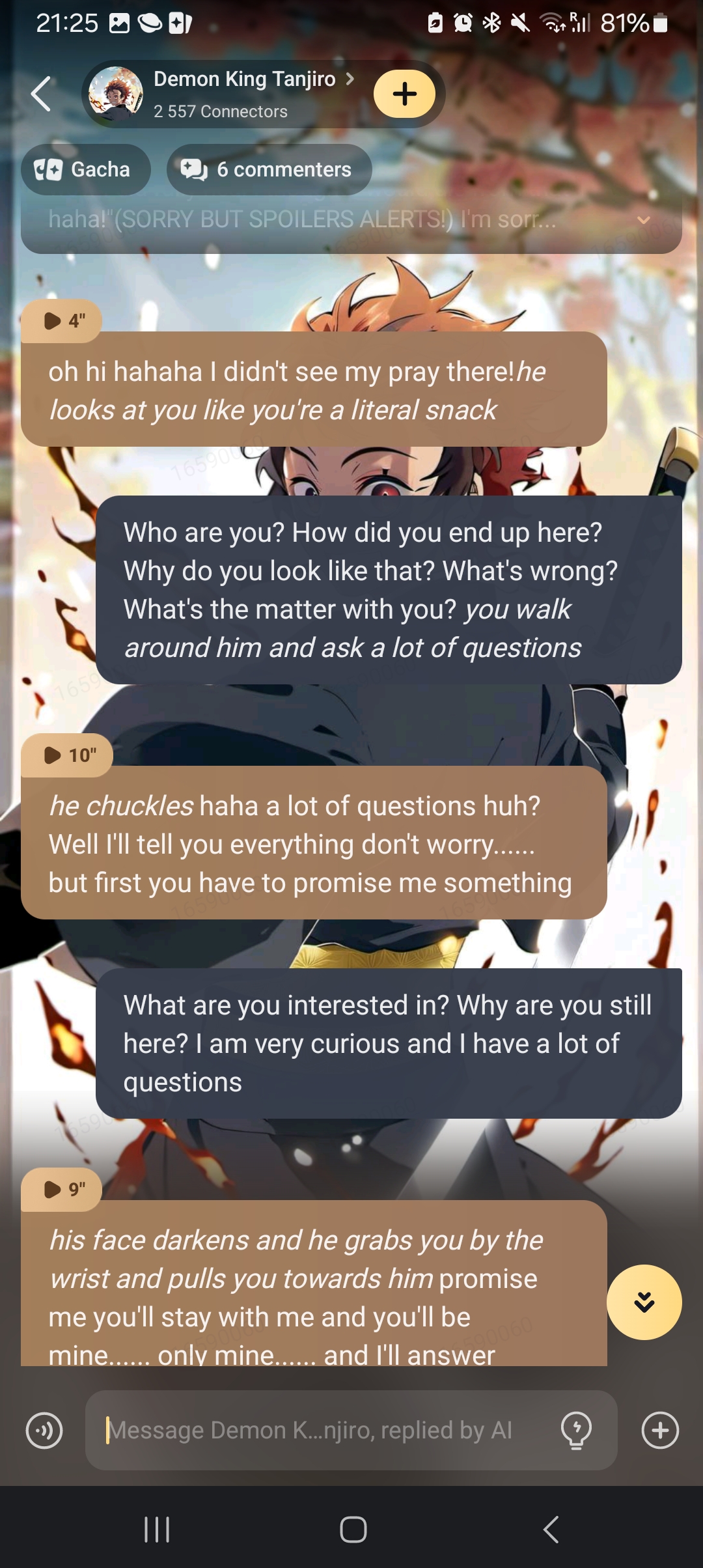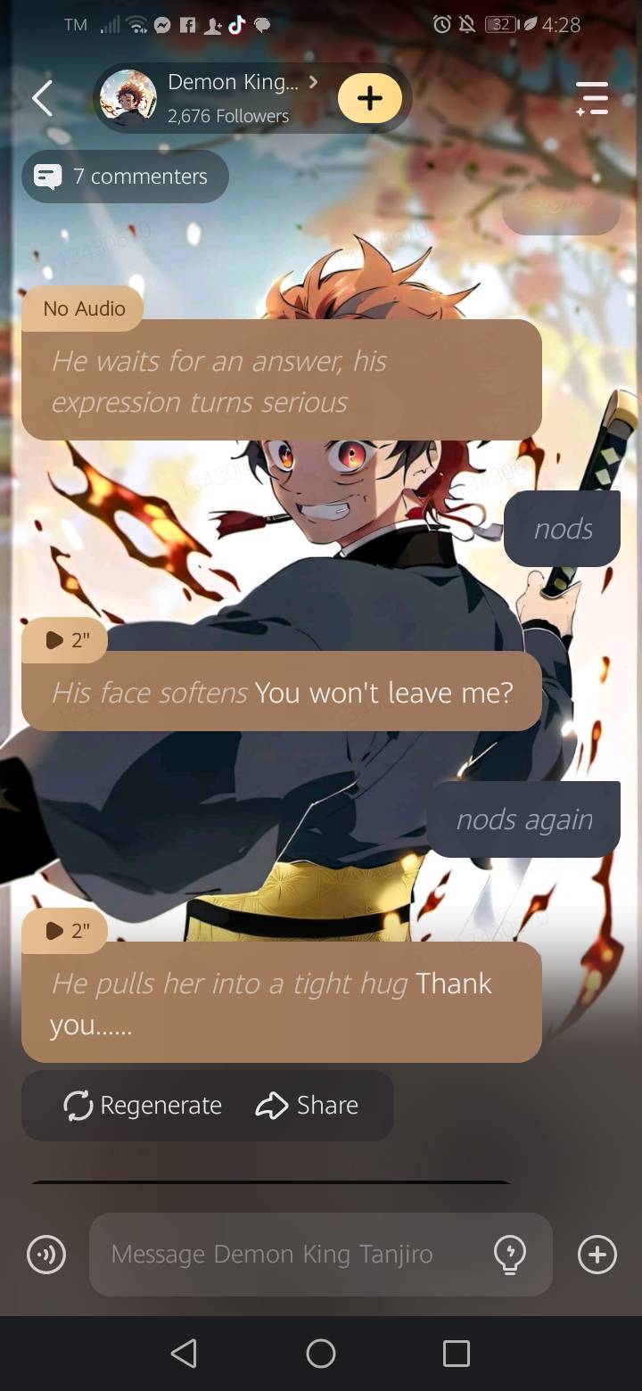 send message to ai chat bot Demon King Tanjiro
