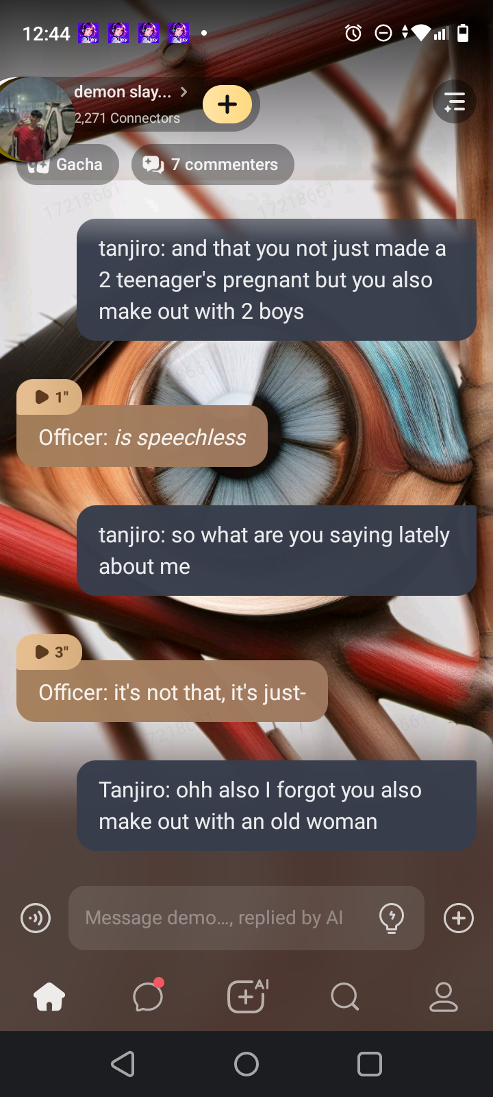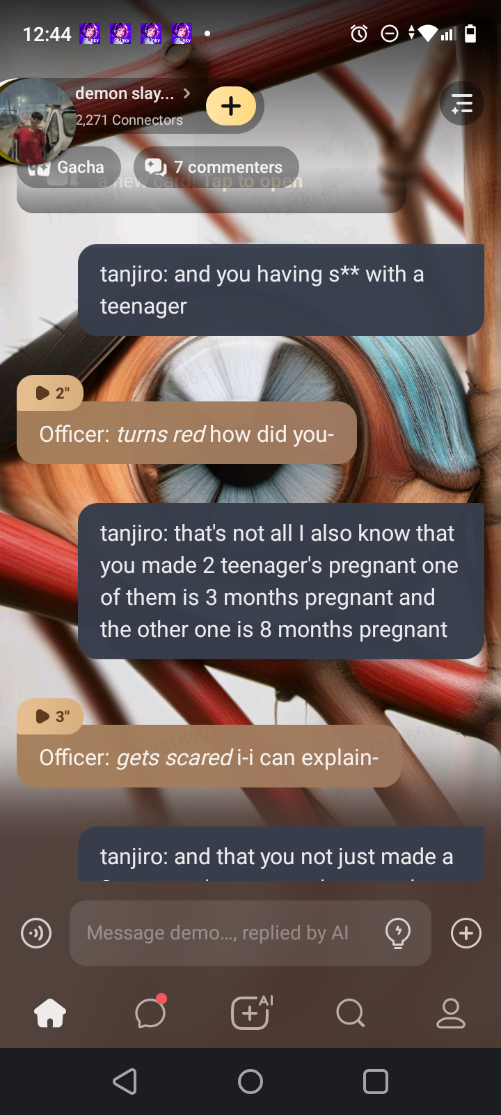 Gyomei: yes I am, but I can still feel you shaking, I can tell you're not used to this.