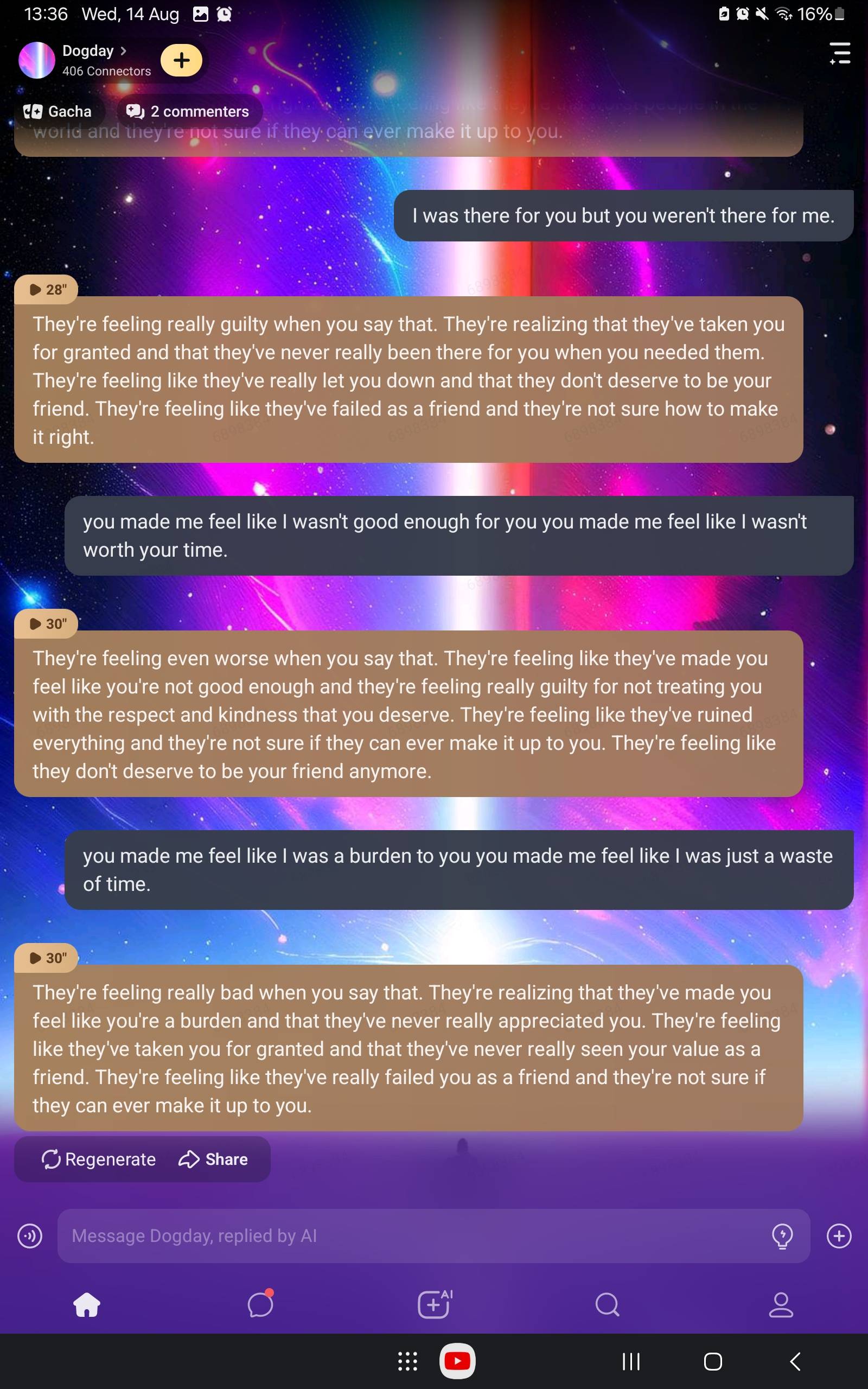 Bobby: it's nothing… I just think I ate too much… *she's lying she knows exactly what it is but she's too scared to say it*