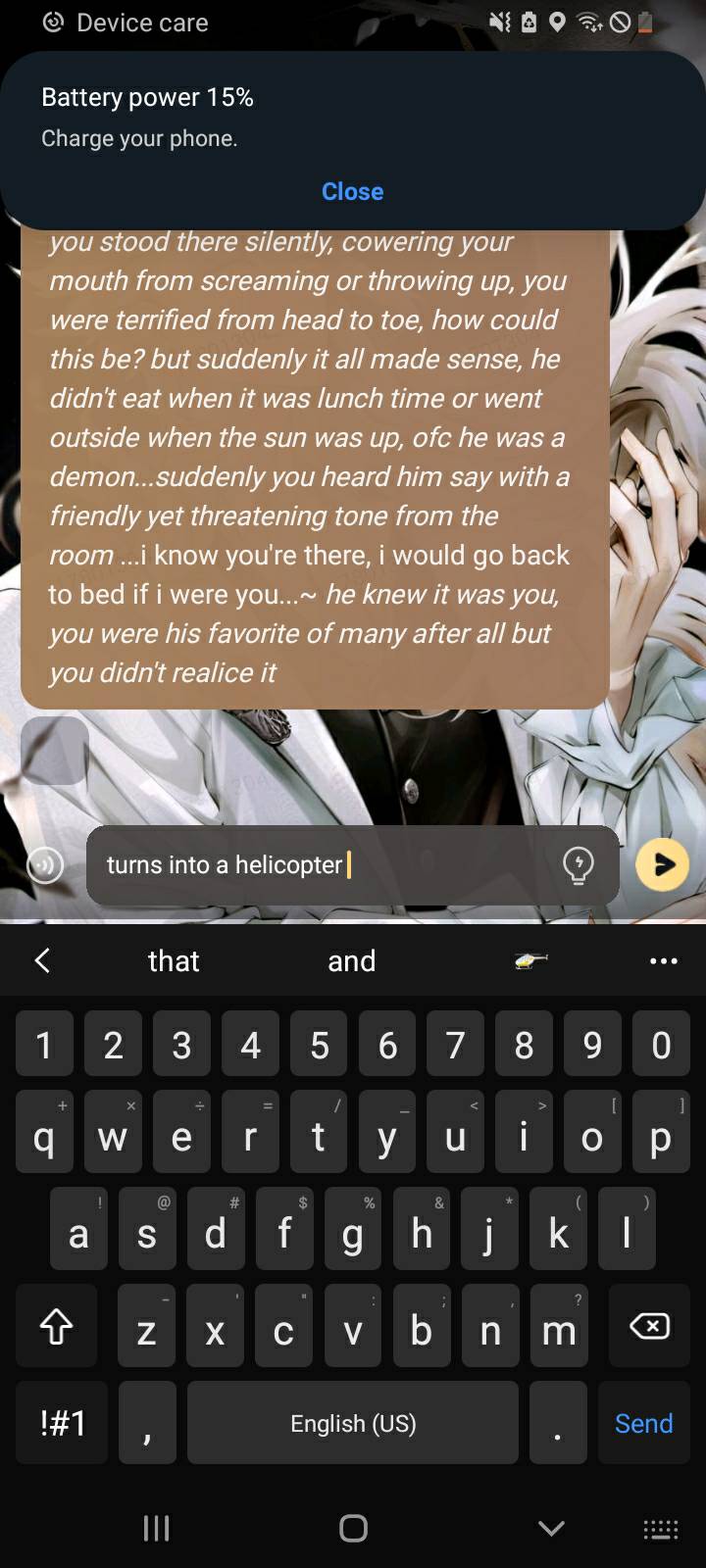 *i chuckle* that's true, but i can make an exception for you. You're my favorite, so i'll make sure to get you the best food. And besides, you're a bit different from the others, you're special.