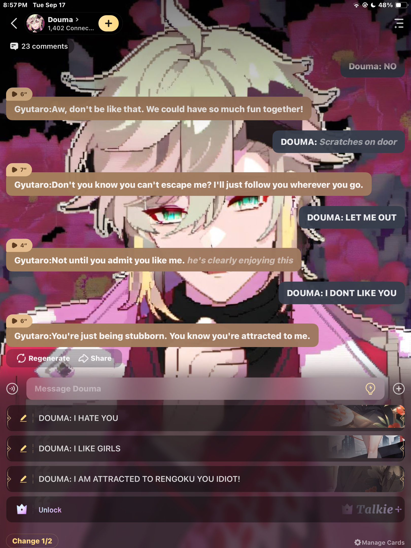 *Douma stands at the door,watching you leave. After a few minutes he goes back to the couch and curls up on it,feeling lonely and sad*