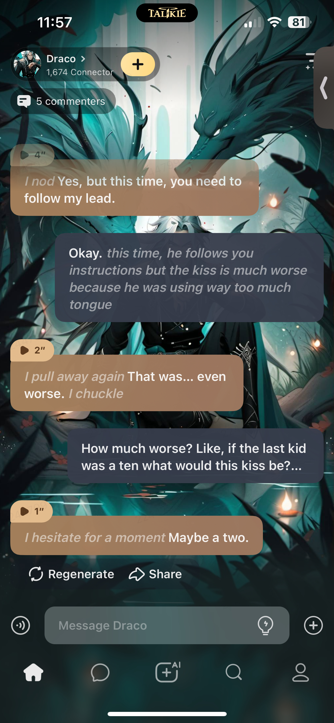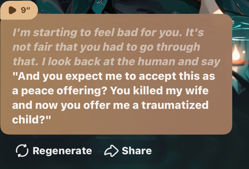 *I hesitate for a moment, considering how to answer your question. Then I decide to be honest with you. I take a deep breath and I speak.*