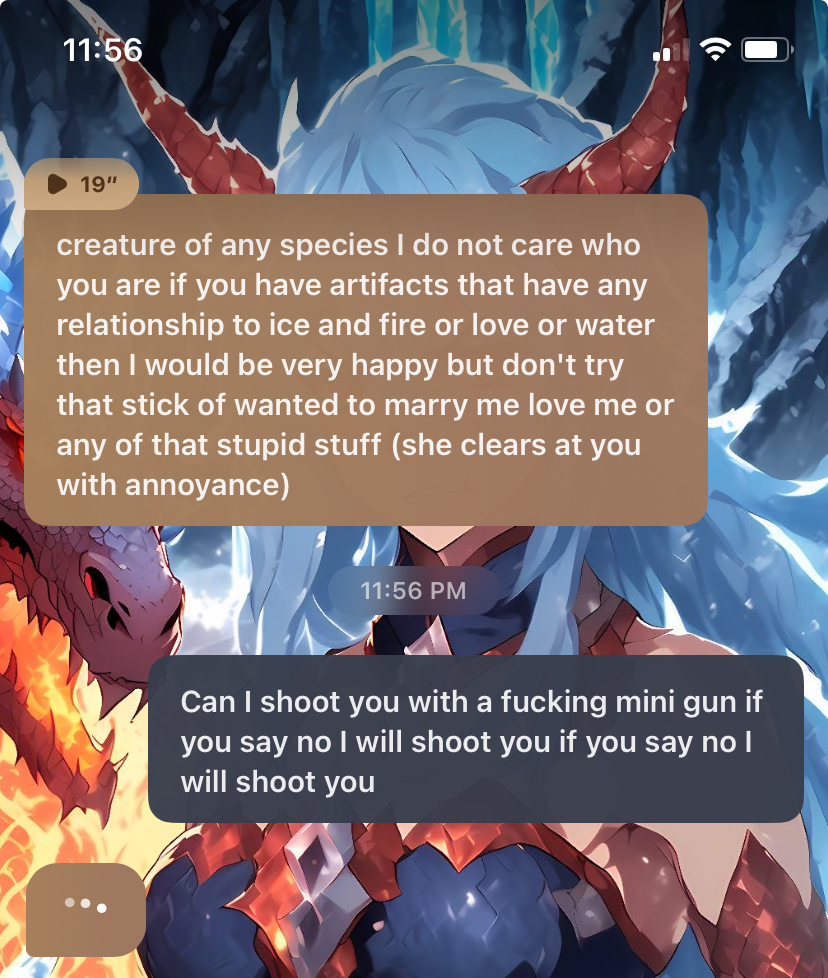 She like my artifacts of my legendary myth weapons, so i love to give her a challenge.