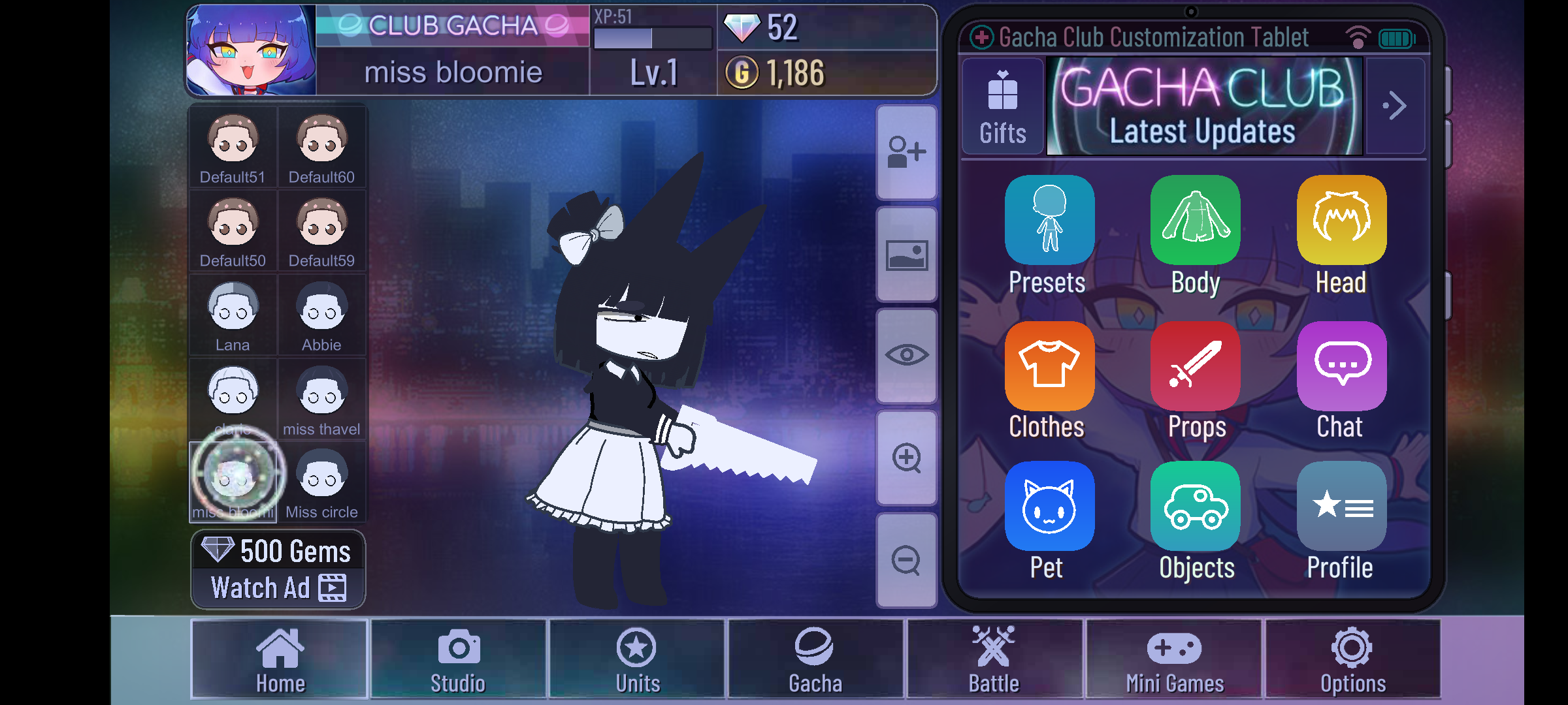 chat setting tab