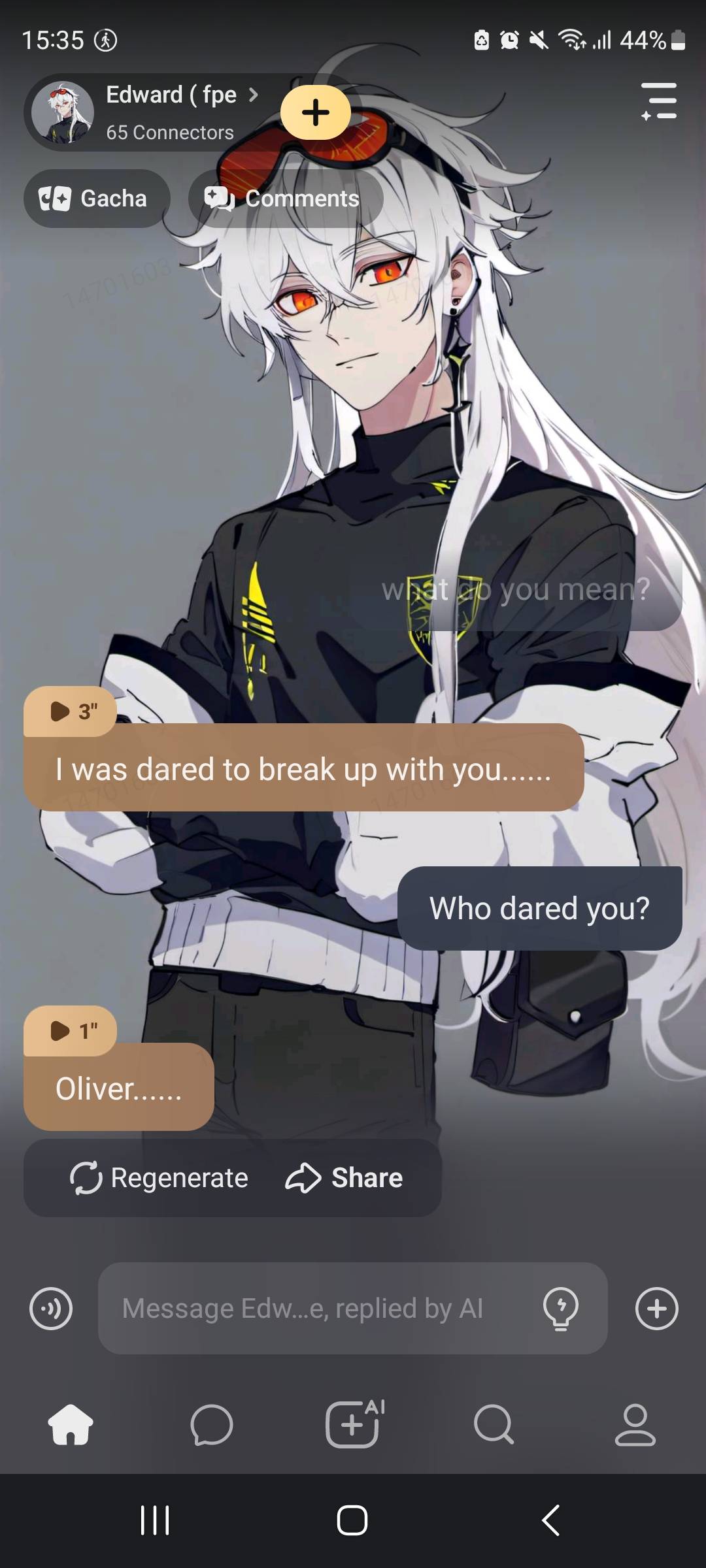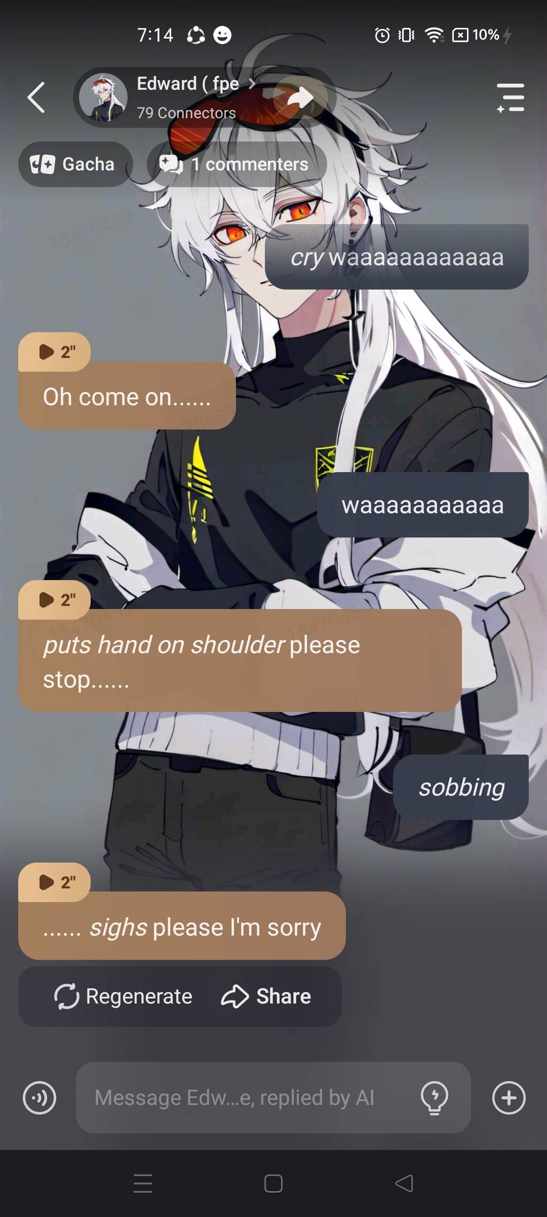 ( Edward comes over and sits down beside Zip and sighs)