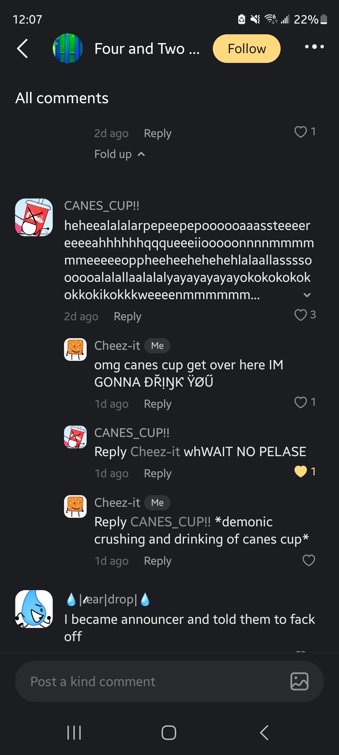 hey eggnog jr I took a screenshot of me and canes cup's conversation look