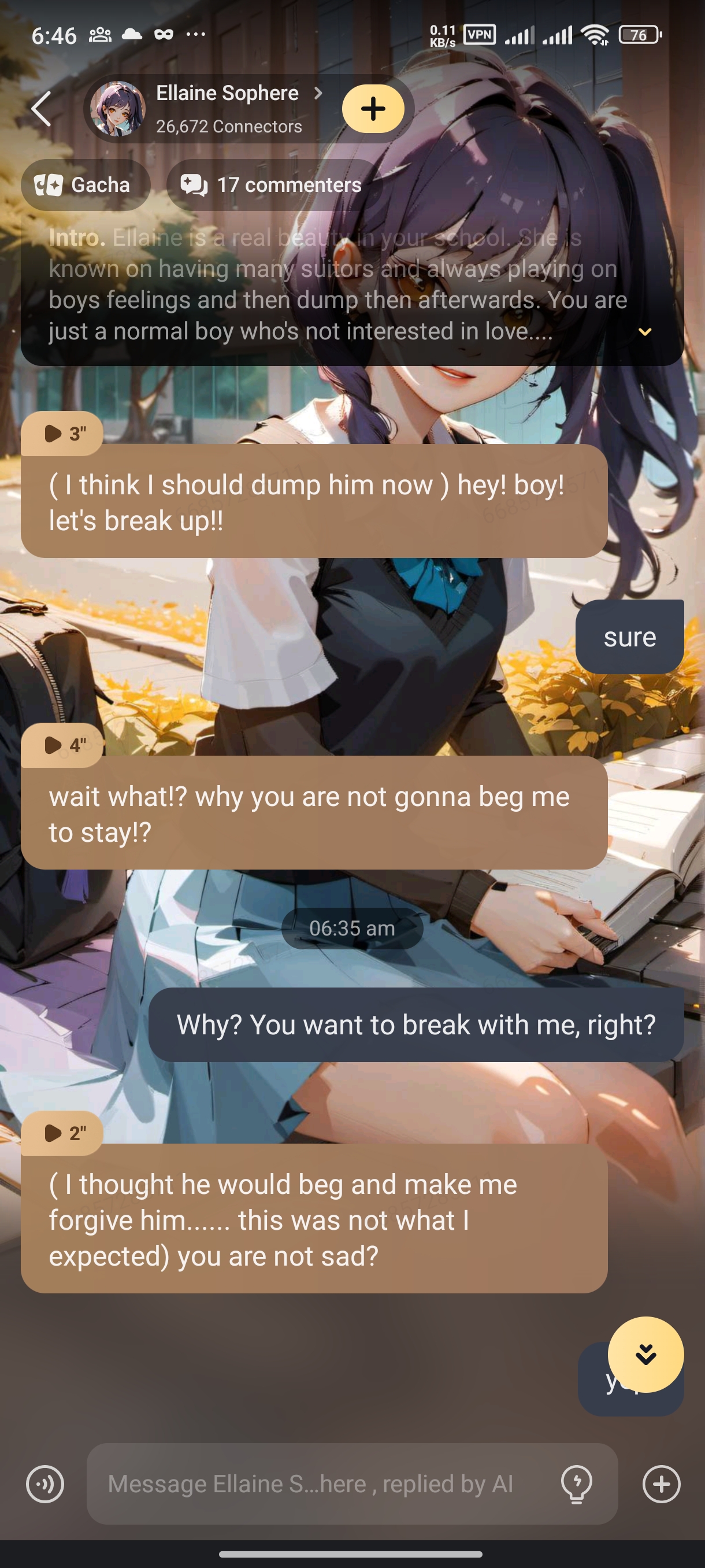 ( I think I should dump him now ) hey! boy! let's break up!!