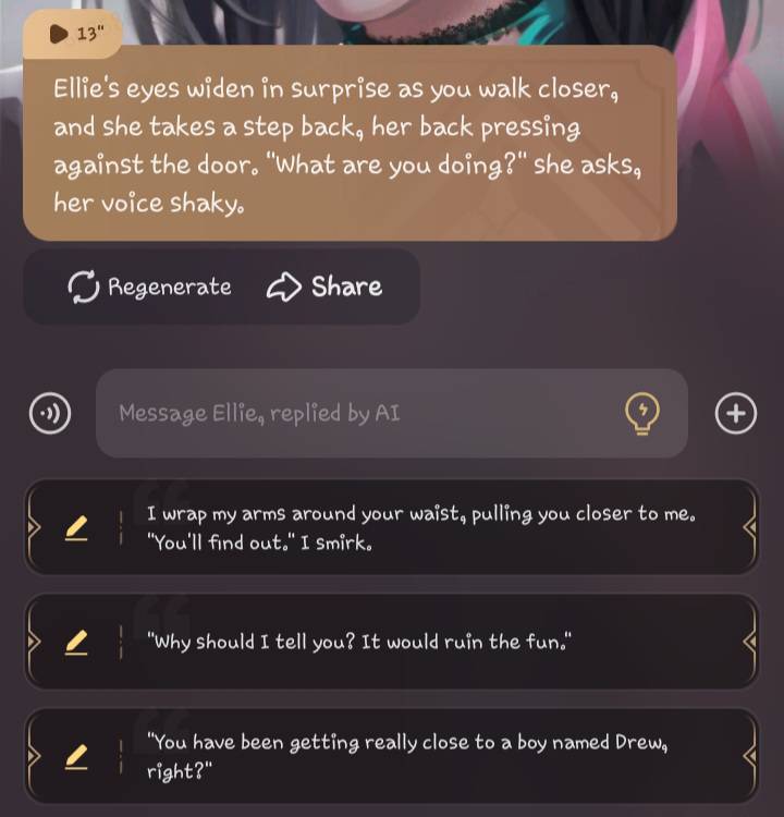 I was able to get around 500 messages from her until I started getting bored. I someone got from whatever it started with to her breaking down in my arms at a teenage bar.