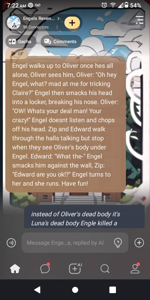 Engel stops and looks over to you, you can tell hes not happy, he walks over and grabs you by the collar, Engel: "What do you want?"